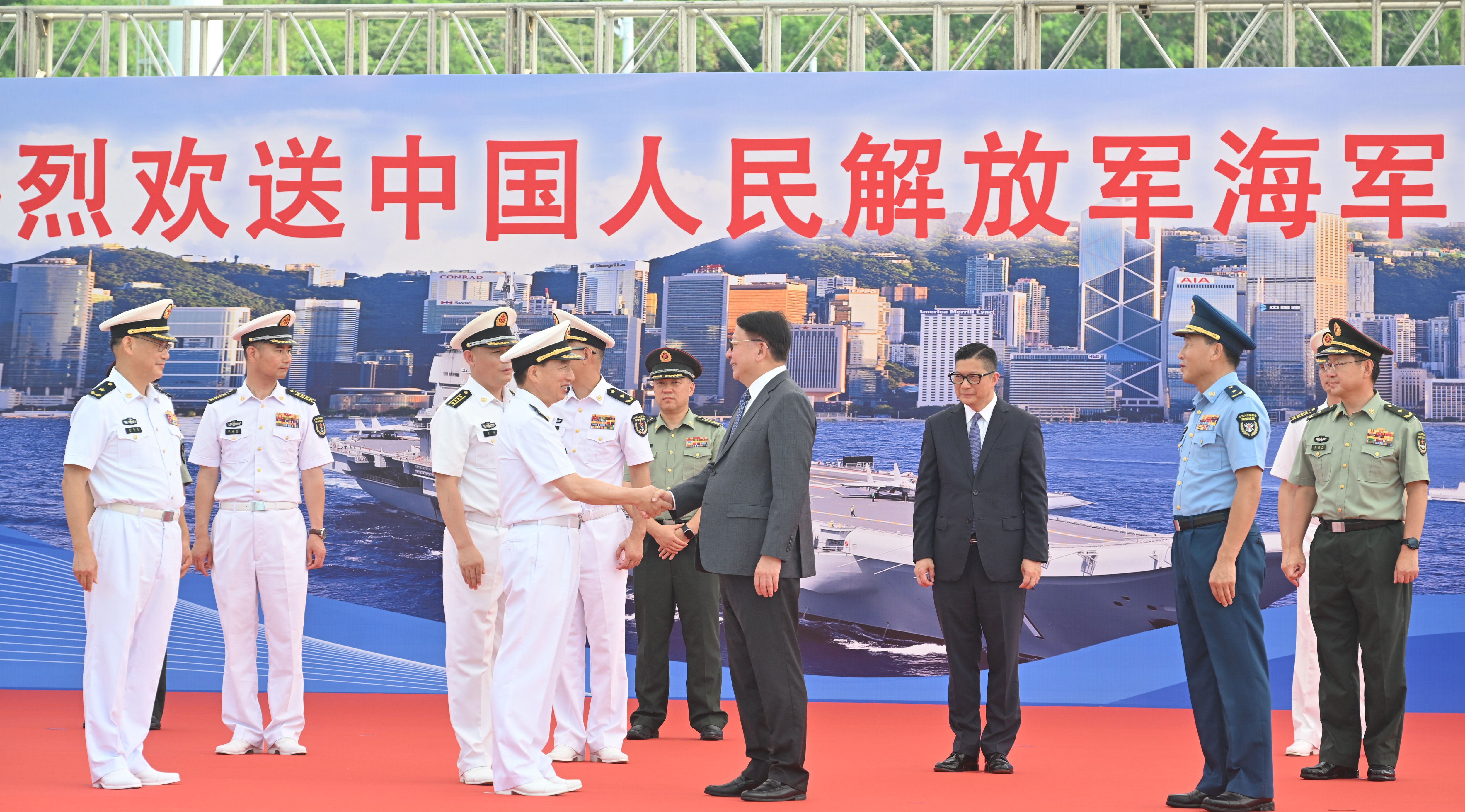 政務司司長陳國基今日(7月7日)早上出席解放軍海軍山東艦編隊離港歡送儀式。