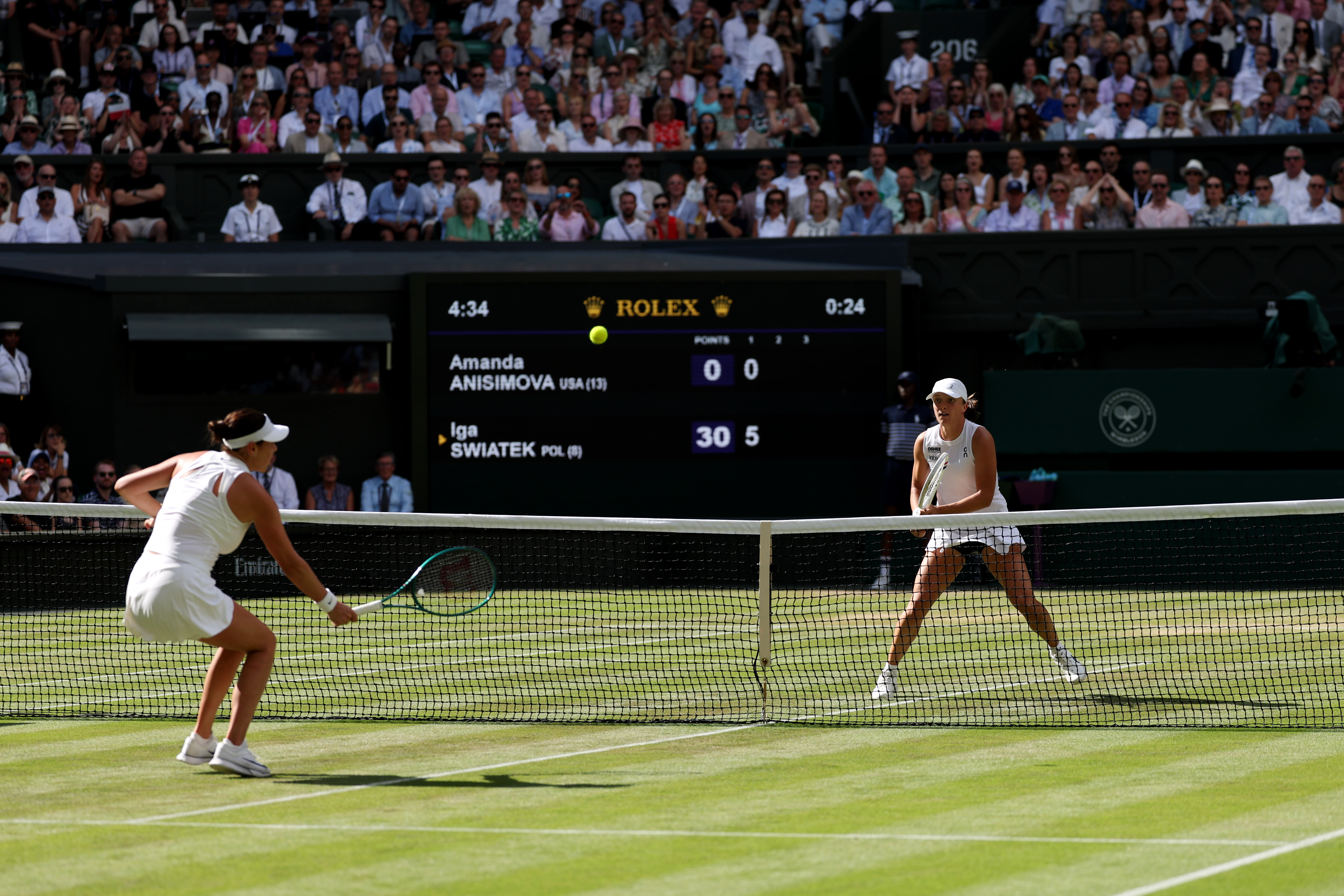溫布頓網球公開賽周六(7月12日)先上演女單決賽,出現了極懸殊的賽果,24歲波蘭球手施華迪(Iga Świątek)直落兩盤6:0大炒23歲美國球手安妮絲莫娃(Amanda Anisimova)。