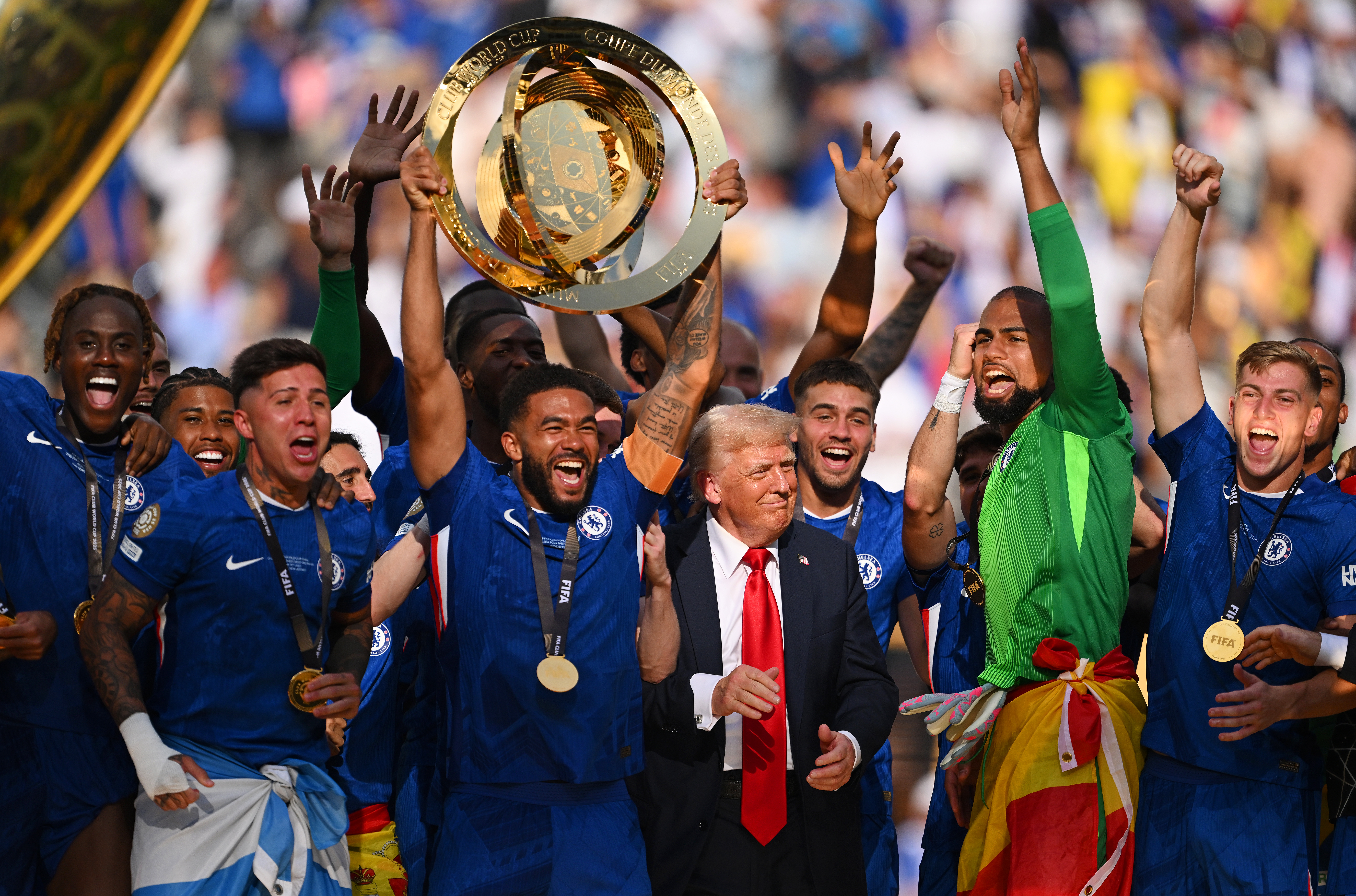 美國總統特朗普除了是今場比賽的座上客,也出席了頒獎儀式,將冠軍獎盃頒給車路士隊長域斯占士。