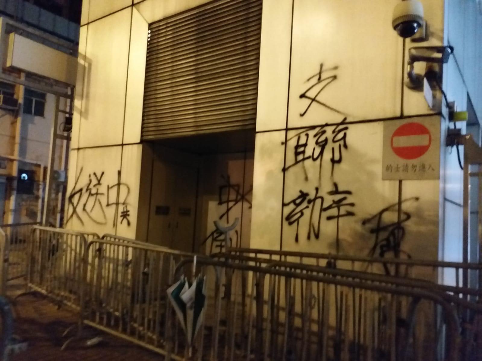 發言人指,今晚部分激進示威者圍堵香港中聯辦,向大樓門口懸掛的國徽投擲黑色油漆彈,在外牆噴塗侮辱性字句,並試圖衝進辦公大樓。發言人指行徑公然挑戰北京權威,觸碰「一國兩制」原則底線,性質嚴重,影響惡劣,是絕對不能容忍的。