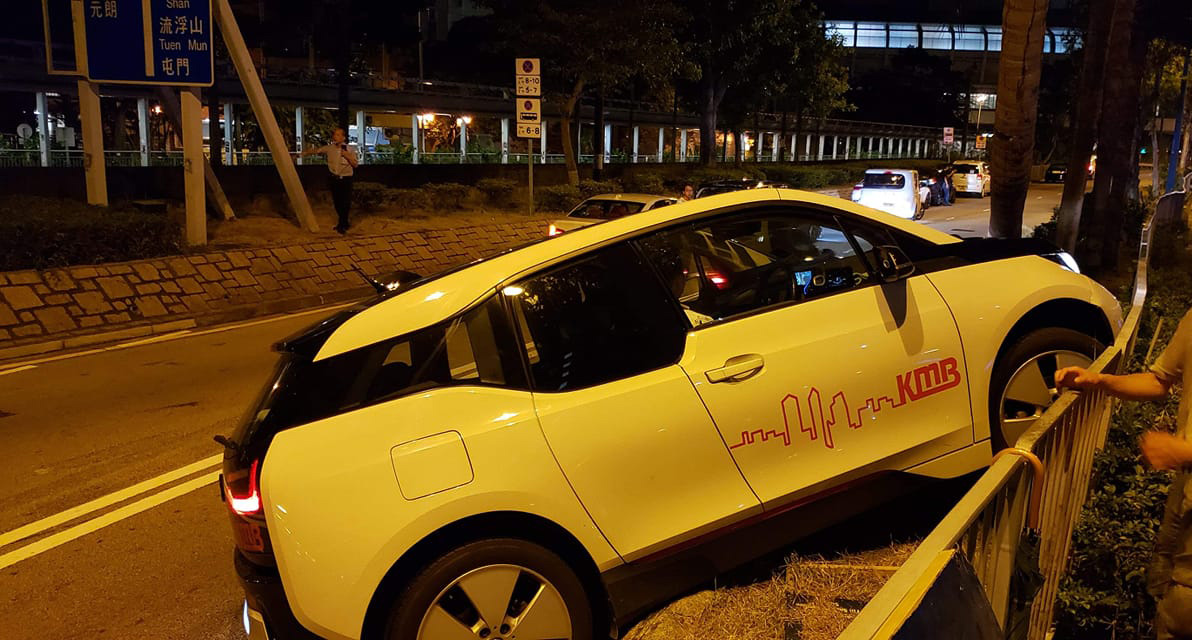 一輛駛經現場的九巴工程車,亦受到煙花影響,懷疑失控撞上壆,情況混亂。