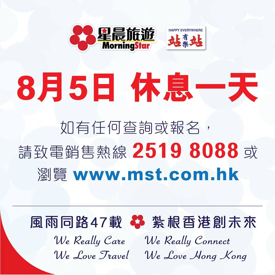 首頁港聞港聞 確保同事及顧客安全 星晨旅遊下周一門市休息一天 作者:熱血編輯部 (陳五) 08-02-2019 Like Facebook Twitter 更多 Like1181 分享0 留言0 近日最受關注的議題,就是下星期一(8月5日)的全港大罷工,當日的交通情況勢必成為焦點。星晨旅遊今晚就在社交網站表示,由於8月5日本港多區均有可能進行大型活動,導致交通異常繁忙,為確保同事及顧客安全,公司全線香港門市及總部將於當日休息一天。大批網民於該帖留言,大讚該旅行社是良心企業,表示下次旅行一定會幫襯。 讀者回應