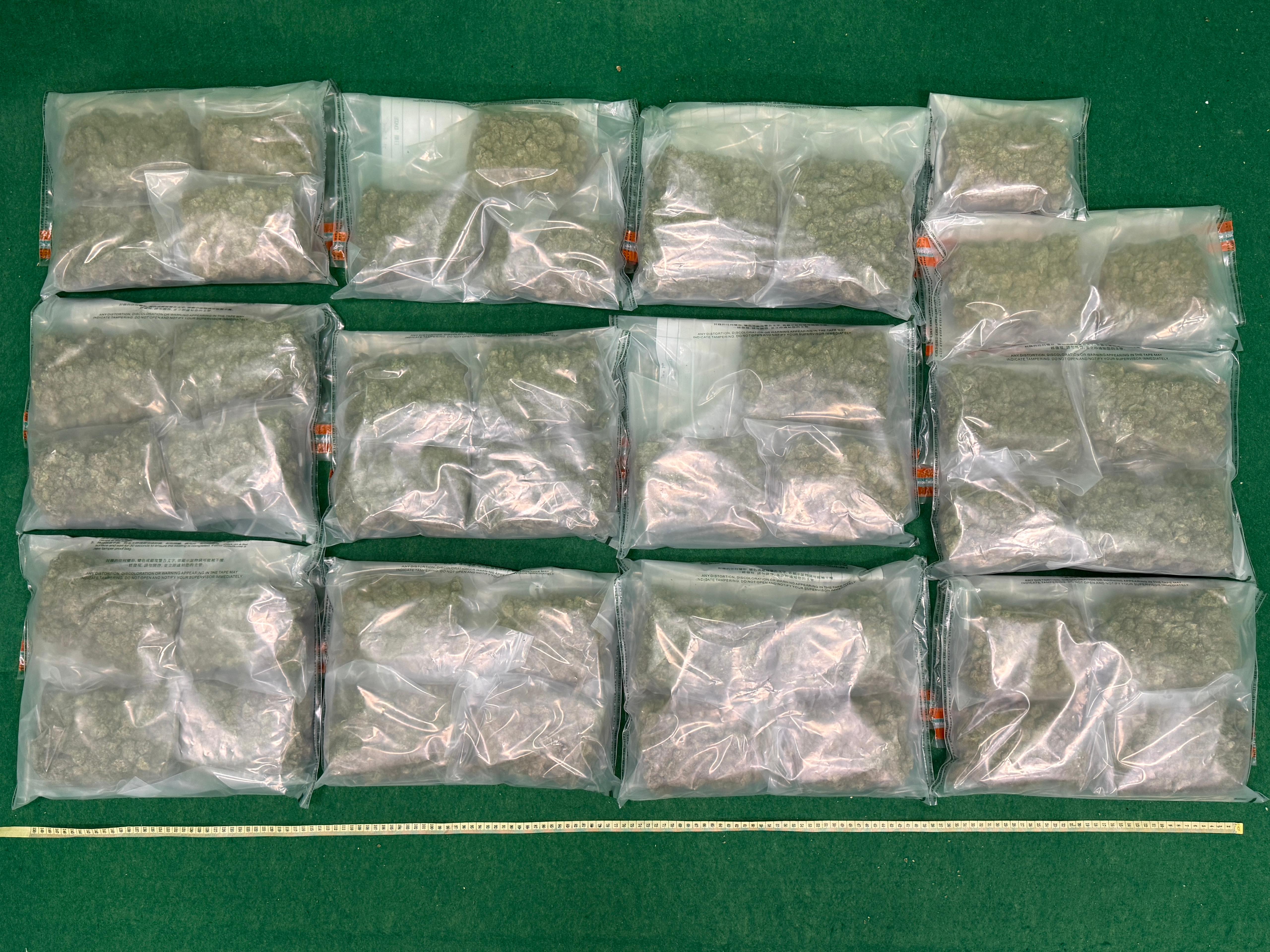 在首宗案件中,一名33歲的男旅客昨日從泰國曼谷飛抵本港。海關人員清關時,在其手提行李中發現共重6.5公斤懷疑大麻花,估計市值約140萬元,遂把他拘捕。