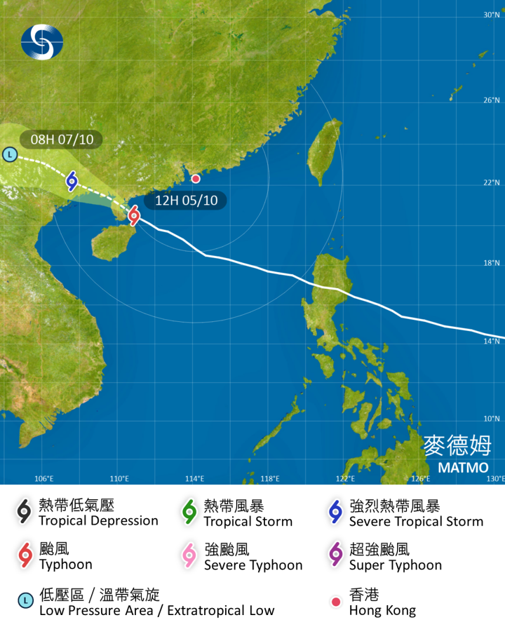在正午12時,颱風「麥德姆」集結在香港之西南偏西約390公里,即在北緯20.5度,東經110.9度附近,預料向西北偏西移動,時速約22公里,移向雷州半島。
