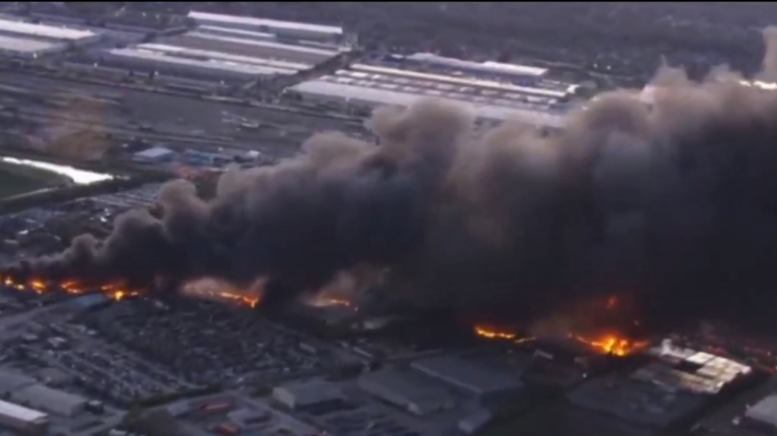 網上片段顯示,飛機墜毀後現場冒出大量濃煙。