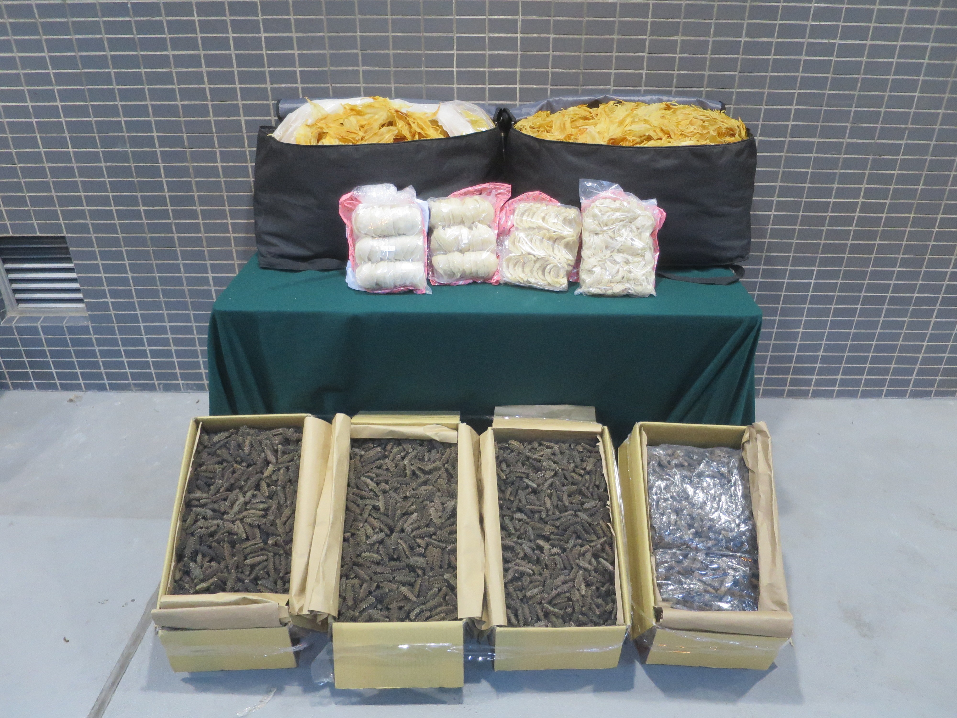 香港海關昨日(11月12日)在深圳灣管制站進行反走私行動,偵破一宗涉嫌利用跨境私家車走私的案件,檢獲一批懷疑走私參茸海味,包括約57公斤乾海參、28公斤乾花膠及2.2公斤燕窩,估計市值共約113萬元。