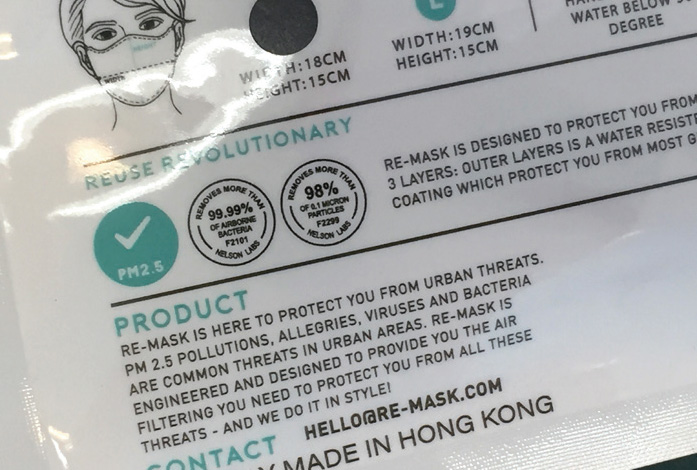 「同事與我都很早已習慣選用『可重用口罩』;有些需要定期更換濾芯,有些只需以水和皂液清潔即可。我們是好奇,想了解市民為甚麼會偏愛選用即棄口罩?於是在進行問卷調查之同時,研究網上有售的廿款可重用口罩,比較它們的過濾能力。」根據美國所跟循的ASTM國際標準組織(ASTM International)之過濾效率標準主要有三個,分別是針對花粉、飛沫等3μm微粒的BFE(Bacterial Filtration Efficiency,即細菌過濾效率);針對流感、沙士等病毒0.1μm微粒的PFE(Particle Filtration Efficiency,微粒子過濾效率/顆粒過濾率),以及針對流感、沙士病毒等0.1μm至5μm(平均2.8μm)微粒的VFE。除此之外,常見的過濾效率標準,還有韓國空氣檢驗過濾的KF及歐盟的Filtering Face Pieces(FFP)。