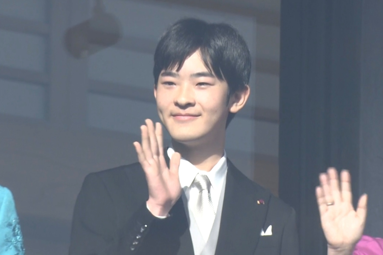 而秋篠宮夫婦的長子、德仁的姪子悠仁,去年9月經過男性皇族成年禮過後,今天身著晨禮服,首度與其他家人站在長和殿的陽台上接受民眾朝賀。