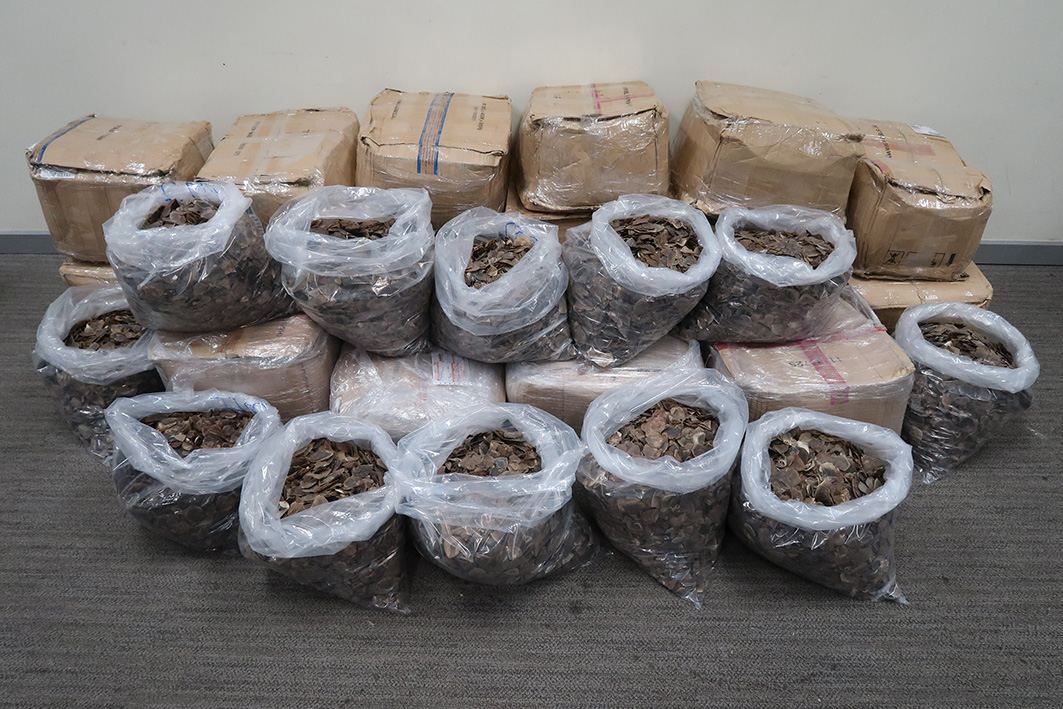 海關人員12月29日至12月30日期間,檢查12件從馬來西亞到港,報稱睫毛液的空運快遞郵件,發現內有約240公斤懷疑穿山甲鱗片。