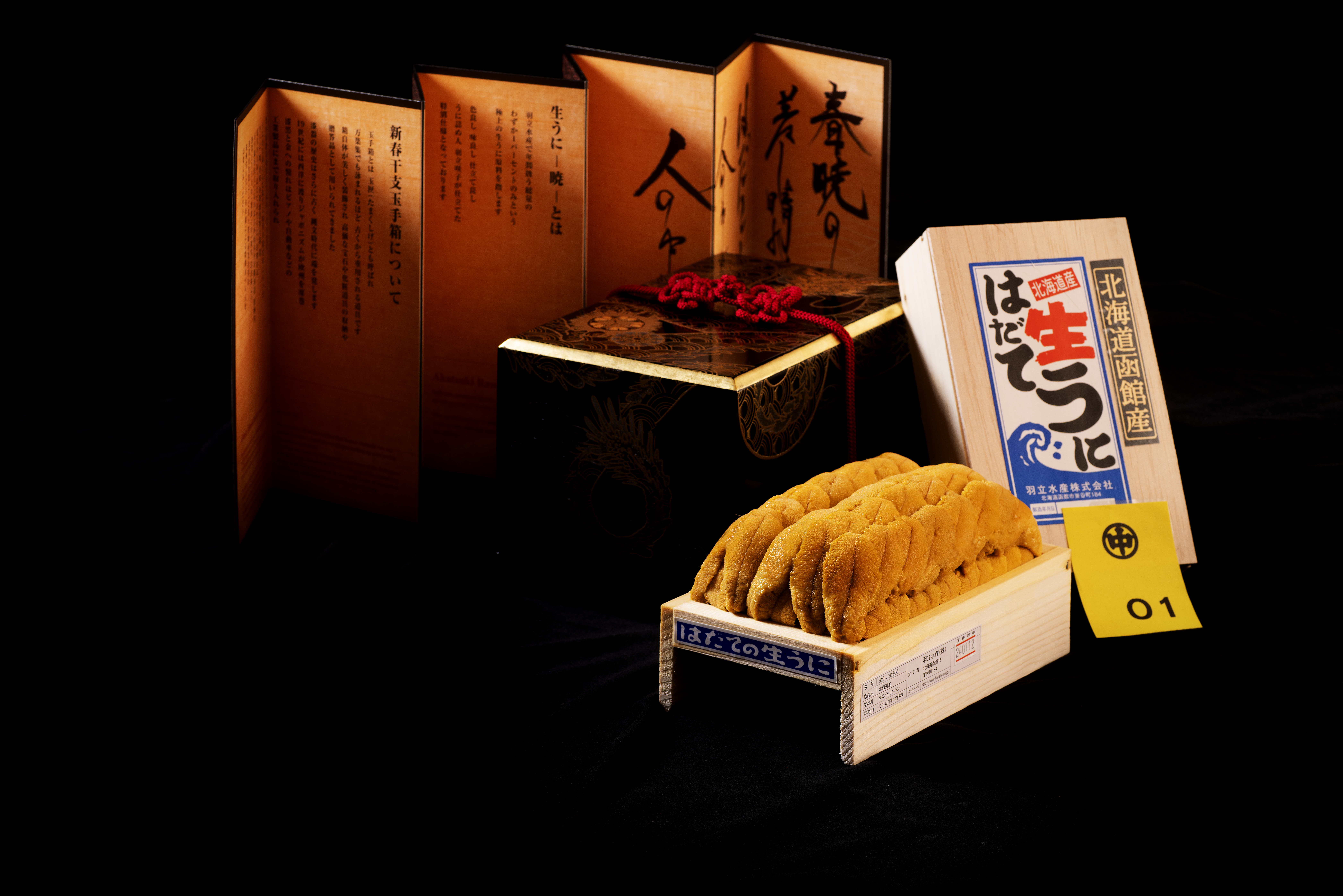 羽立水產(Hadate) 的北紫海膽是日本頂級的海膽,並在多間日本米芝蓮餐廳供應。而在這次拍賣會上,唯一被拍賣的是羽立水產北紫海膽中最頂級及珍貴的曉海膽,它是羽立水產提供最頂級的1%海膽。