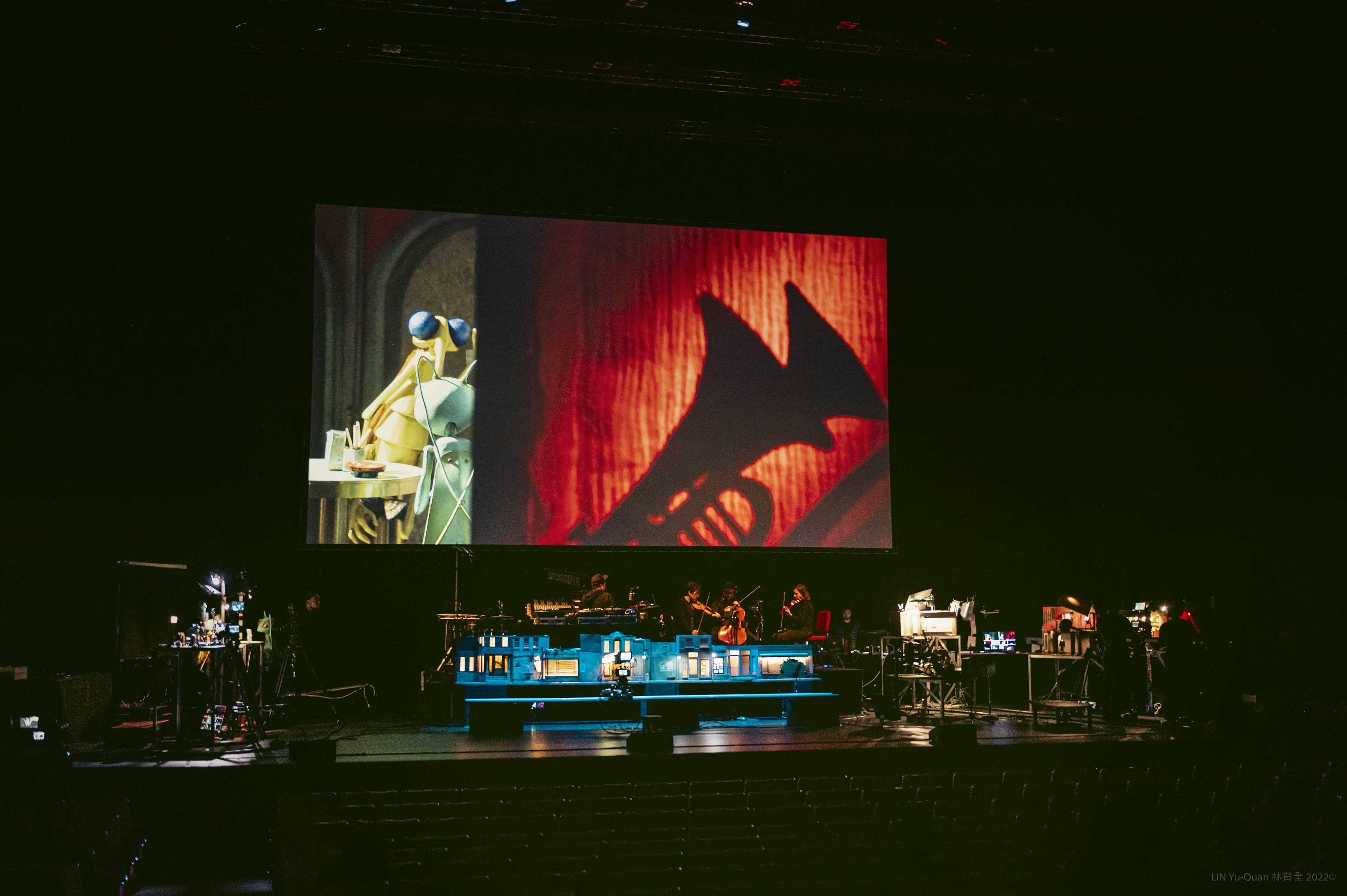 是次在香港演出的團隊由14人組成,戲偶師、擬音師、攝影師和技術人員將遊走於20座微型場景,同步操控75個大小不一的手工戲偶,並以八部攝影機進行「一鏡到底」拍攝,即時投影至台上的大銀幕。與此同時,唱片騎師兼音樂人P-Love(原名保羅‧卡普南)則運用唱盤、電子琴和電子樂器,搭配弦樂三重奏,根據劇情即時切換不同的原創配樂和音效,時而演奏古典樂韻,時而添加擬音或卡通音效以增強喜劇橋段的效果。席上的觀眾既可透過銀幕欣賞電影,也能隨時低頭一窺台上戲偶師與攝影師們如何打造各個場景,同步見證電影誕生與幕後製作的過程,享受不一樣的觀影體驗。