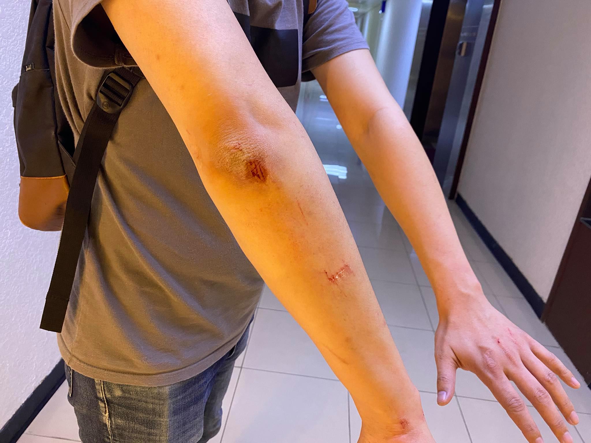 熱血公民副主席鄭錦滿今日(1月8日)傍晚到尖沙咀半島中心,處理一宗涉及不良銷售手法的投訴個案時,稱遭到店員的施襲,手肘及前臂擦損。