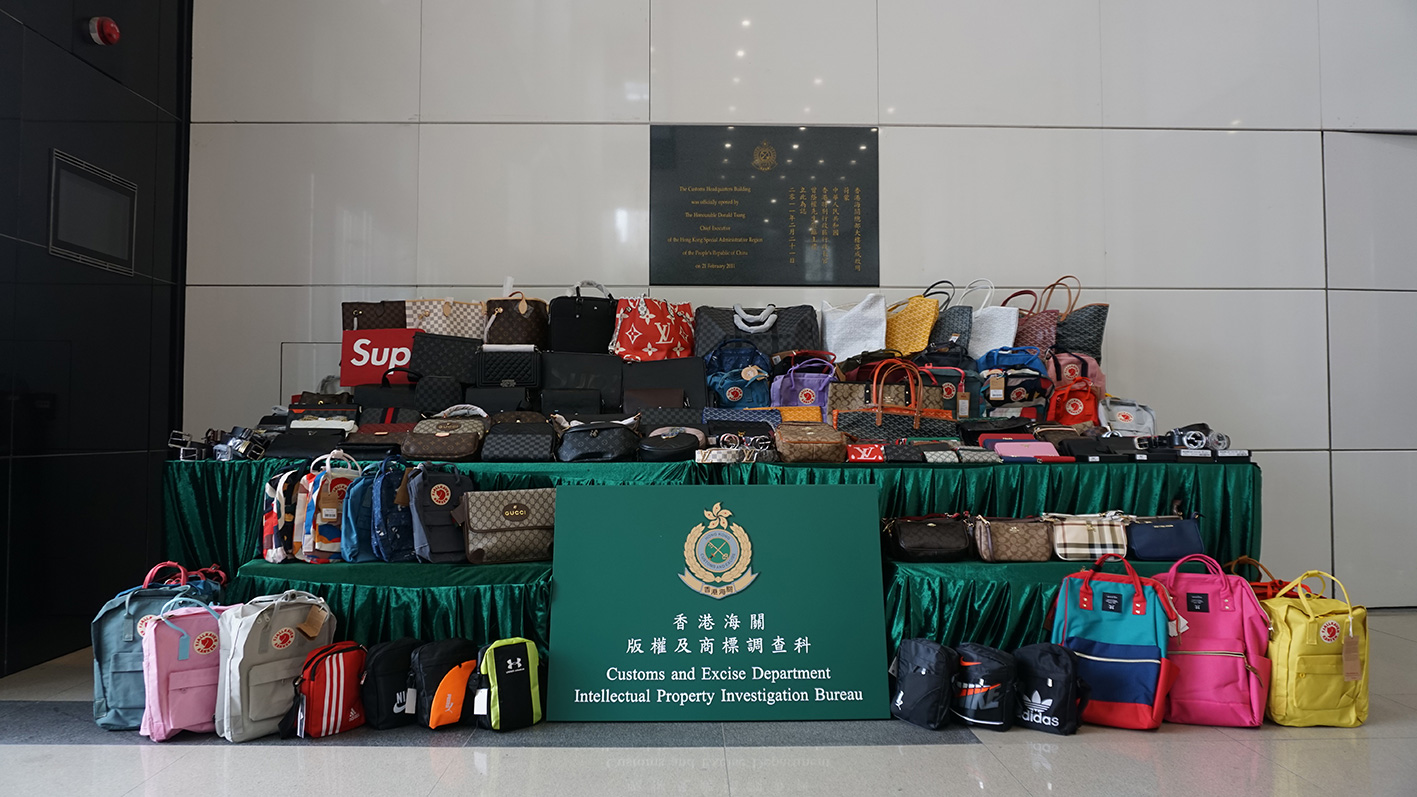 海關早前接獲舉報,指中區和旺角區有小販攤檔售賣冒牌物品。經深入調查及在商標持有人的協助下,海關人員掃蕩多個位於中區和旺角通菜街售賣冒牌物品的流動和固定小販攤檔,並搗破兩個位於通菜街的樓上冒牌物品貯存中心,檢獲該批懷疑冒牌物品。
