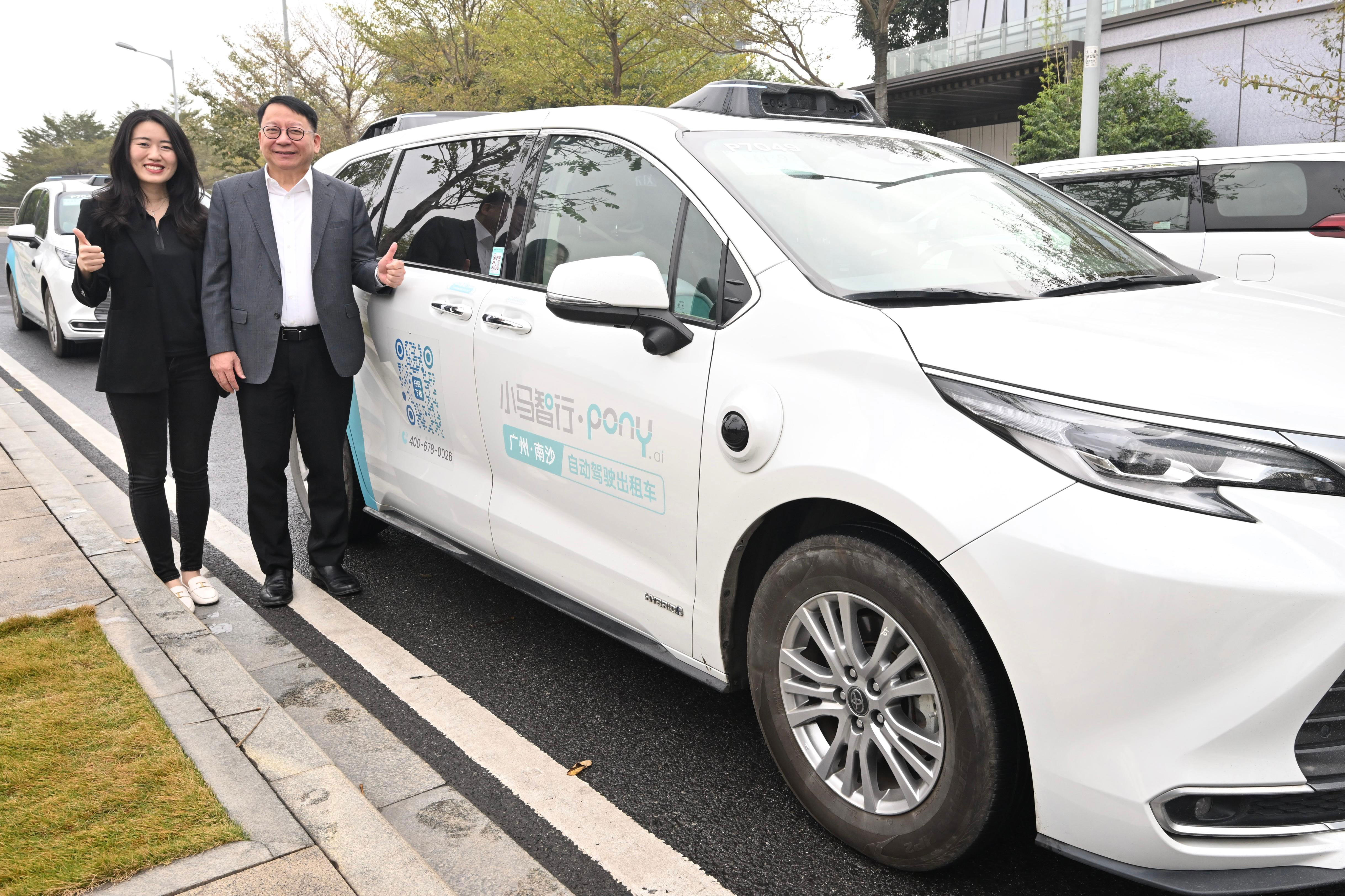陳國基早上在廣州南沙參觀自動駕駛初創企業小馬智行,並試乘其自動駕駛出租車。他欣悉企業着力研發先進、安全和可靠的自動駕駛技術,在內地不同城市均有進行道路測試,並正推展商業化營運。