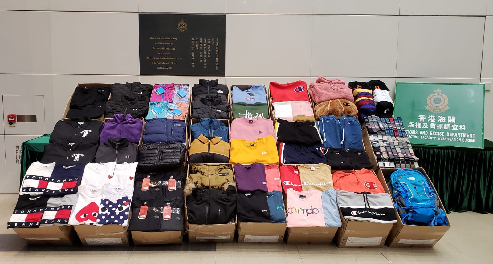 海關早前接獲舉報,指市面上有店舖售賣懷疑冒牌服飾。在商標持有人的協助及經深入調查後,海關人員在過去一星期共掃蕩8間分別位於灣仔、尖沙咀、旺角、葵涌及荃灣的店鋪,並檢獲該批懷疑冒牌服飾。