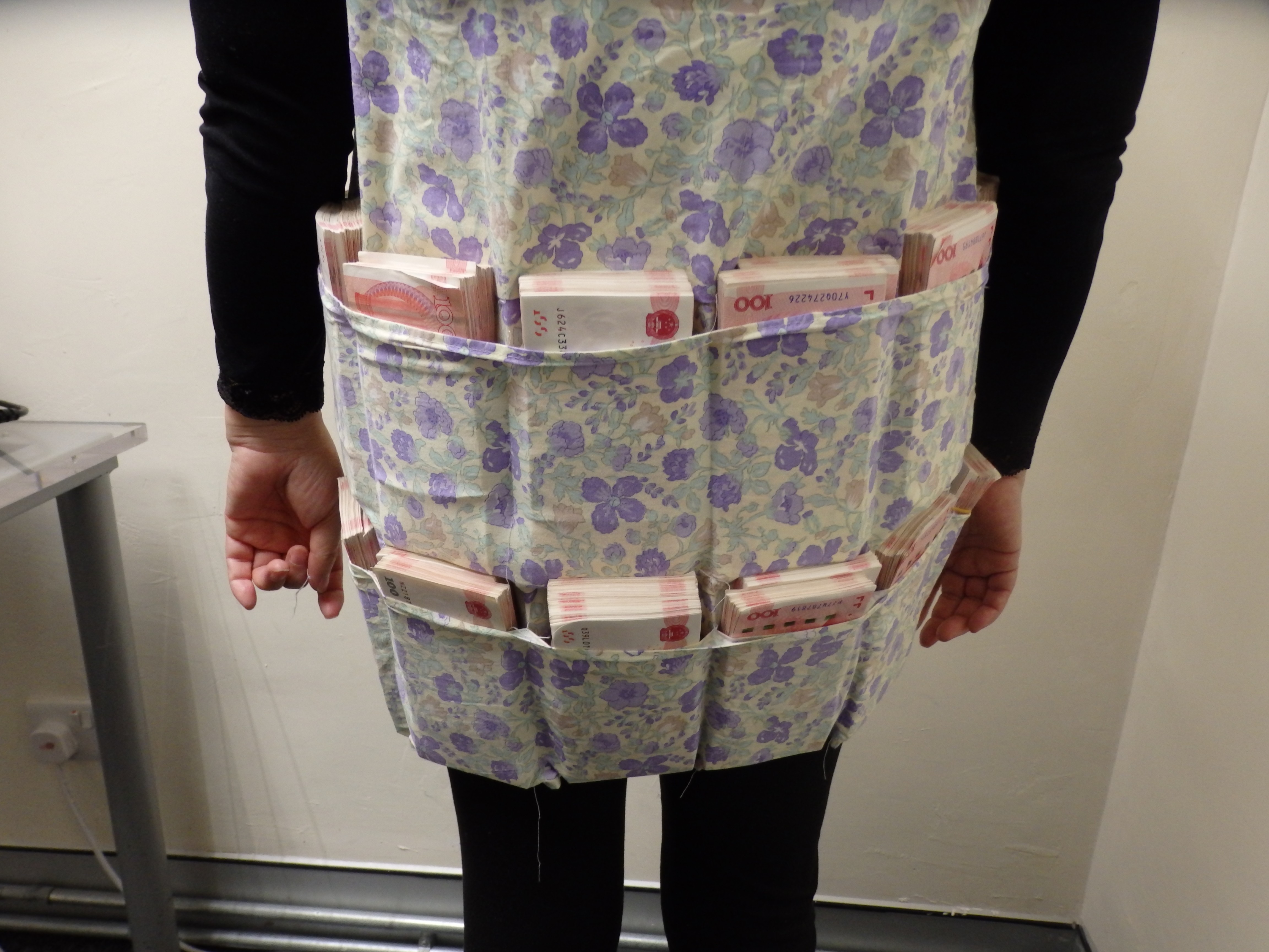 海關人員昨日在落馬洲支線管制站截停一名62歲入境女旅客進行清關檢查,首先在她攜帶的環保袋內發現少量外幣現鈔,其後在搜身檢查期間,發現其身穿的特別縫製背心藏有大量未經申報的外幣現鈔,折算後總值共約33萬港元,即超過《實體貨幣及不記名可轉讓票據跨境流動條例》規定下的12萬港元限額,遂將她拘捕。