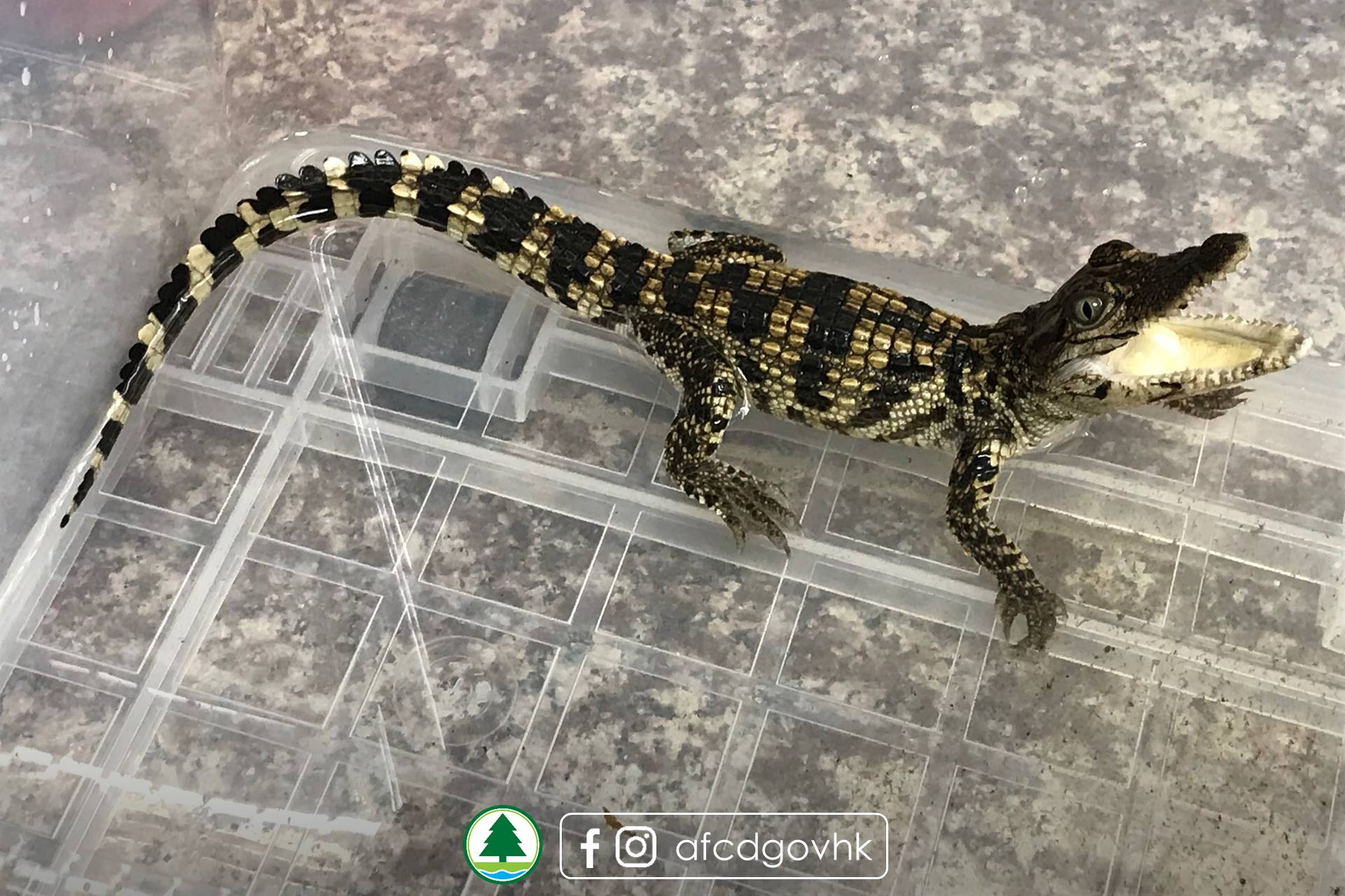 表示,該鱷魚長約一尺,健康大致良好,但要再長大一點才能夠確認品種。署方表示,由於本地沒有野生鱷魚,相信小鱷魚是被人放生。