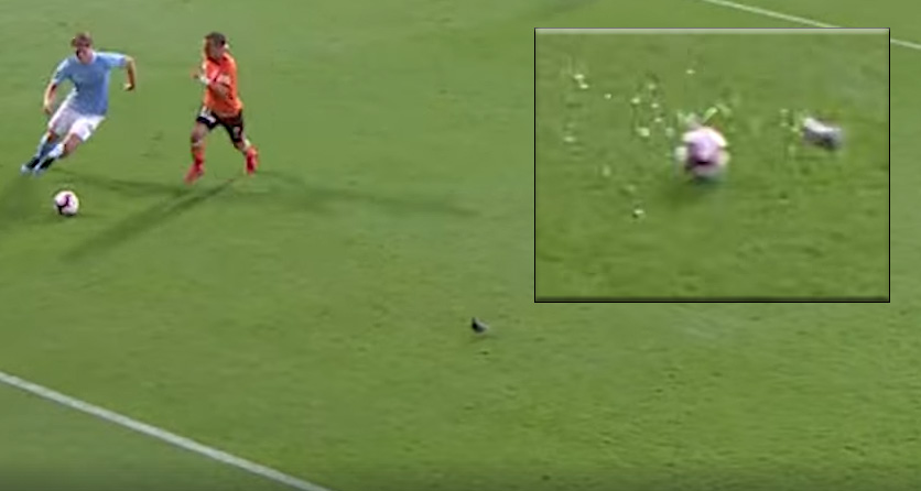 罕見事件發生於墨爾本城主場對布里斯班獅吼的澳職賽事,在上半場32分鐘,墨爾本城球員於後半場解圍時,皮球直撞向在球場內的一隻鴿。鴿被省中之後,隨即撞飛出數碼以外,並甩了不少羽毛。暈得一陣陣的鴿最終飛出場外。