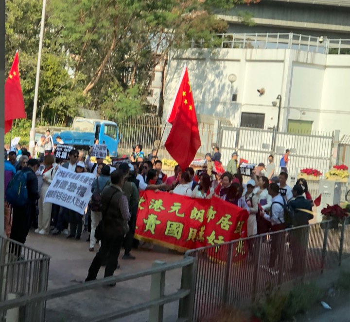 一班身穿白衣、手持五星旗的土共,今午在元朗西鐵站的巴士總站出發,遊行至元朗警署,他們手持令人心寒的標語,包括「無林卓廷帶暴徒入元朗就沒721」、「守護家園抗暴被控告 憤怒!」、「林卓廷深夜煽暴光復元朗 製造恐慌 設局挑釁勾引白衫人犯法」。