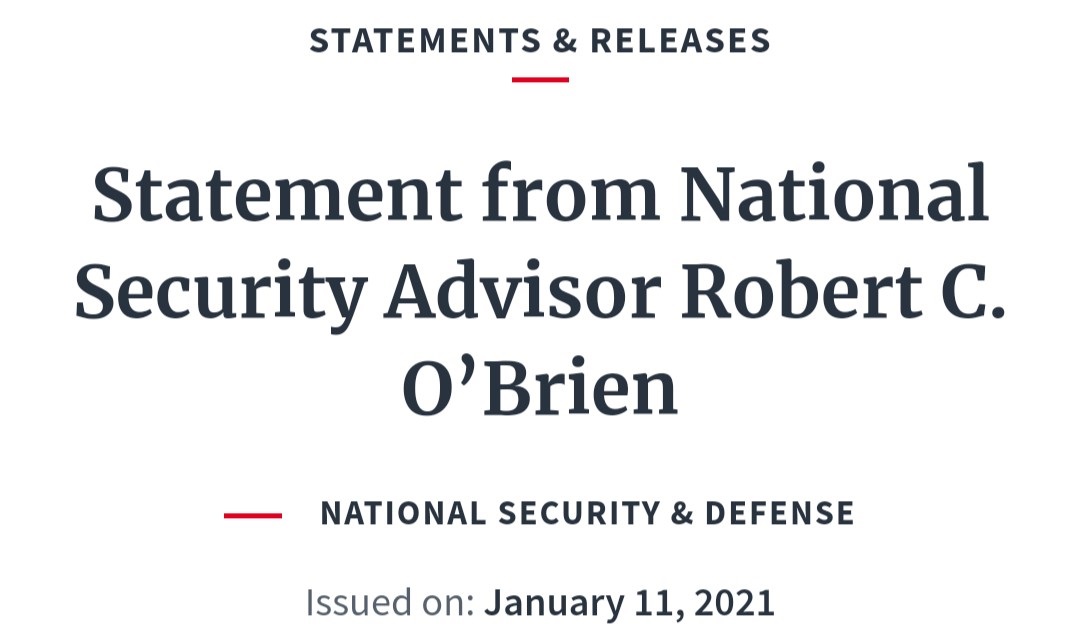 美國國家安全顧問奧布萊恩周一(1月11日)發聲明,關注香港50多名涉及泛民初選人士被捕,並指美國會考慮進一步應對的選項。