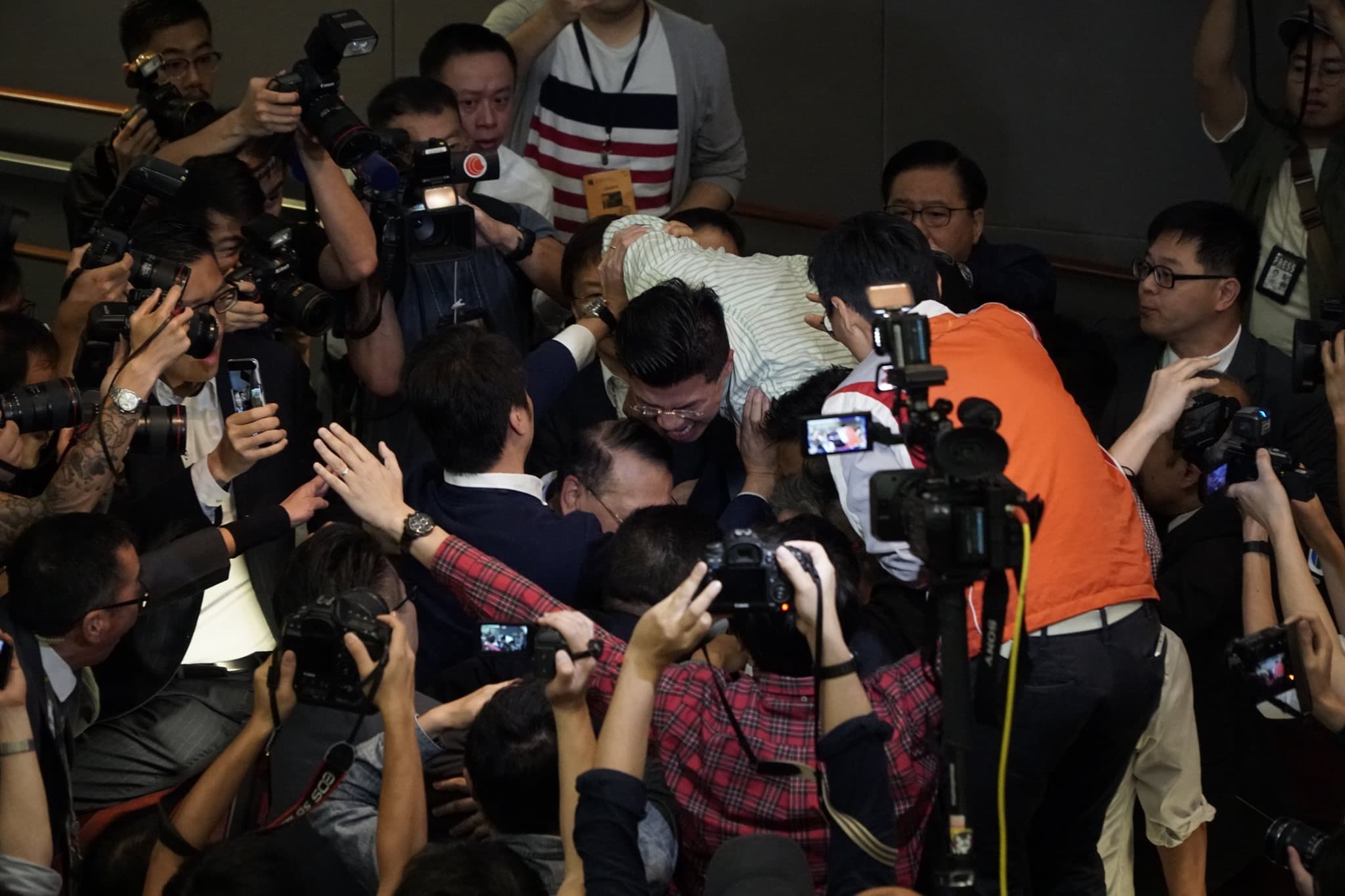 7名被告分別為范國威、朱凱廸、林卓廷、郭家麒、區諾軒、梁耀忠及陳志全。控罪指,7人在2019年5月11日於立法會會議室內,涉嫌襲擊、妨礙和騷擾民建聯的立法會議員陳恒鑌、周浩鼎及葛珮帆。
