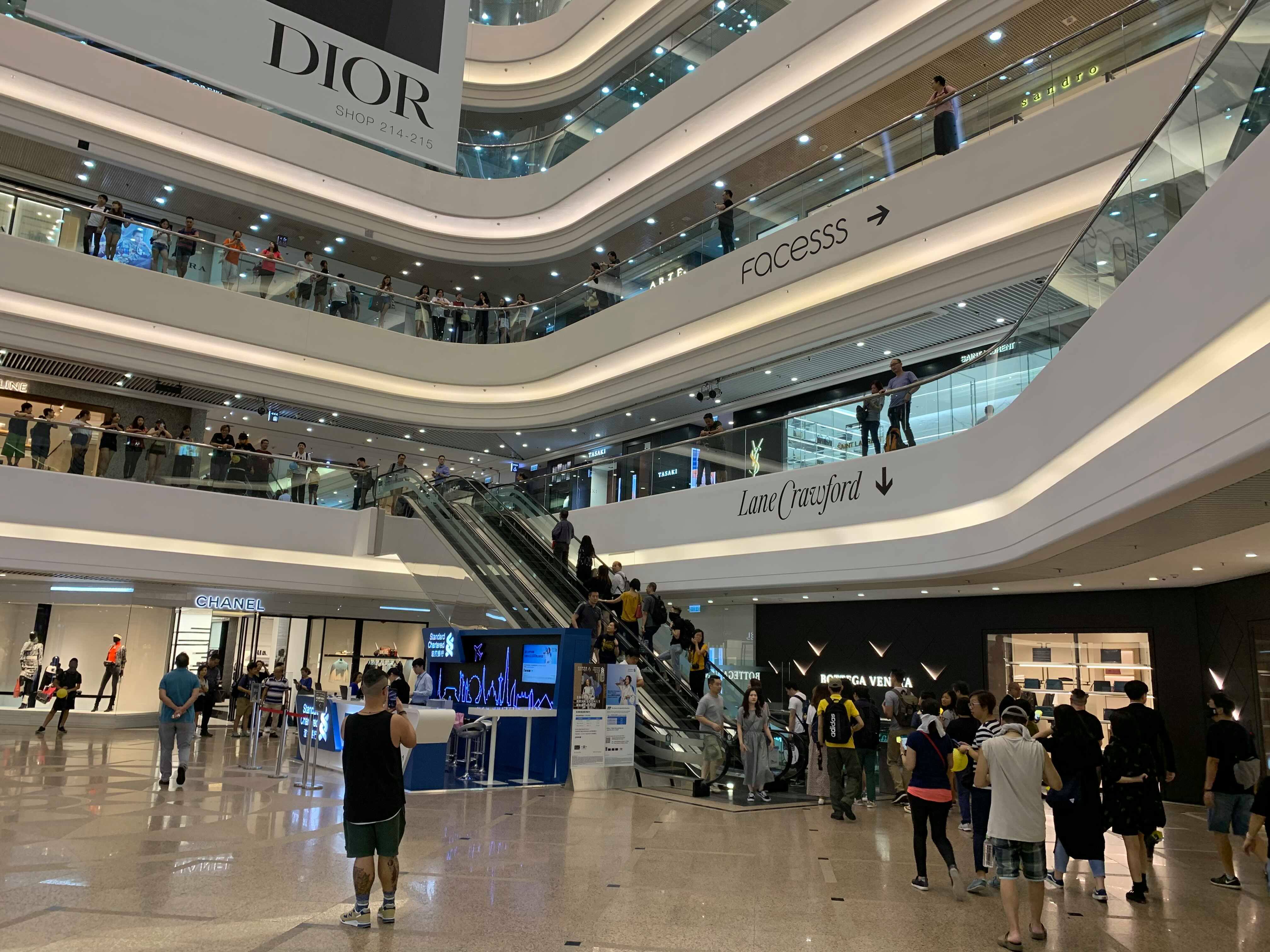 2020年7月1日,有示威者在銅鑼灣時代廣場聚集,警方進場驅散期間,一名女子涉嫌將一支拉帶鋼柱從3樓擲到2樓。