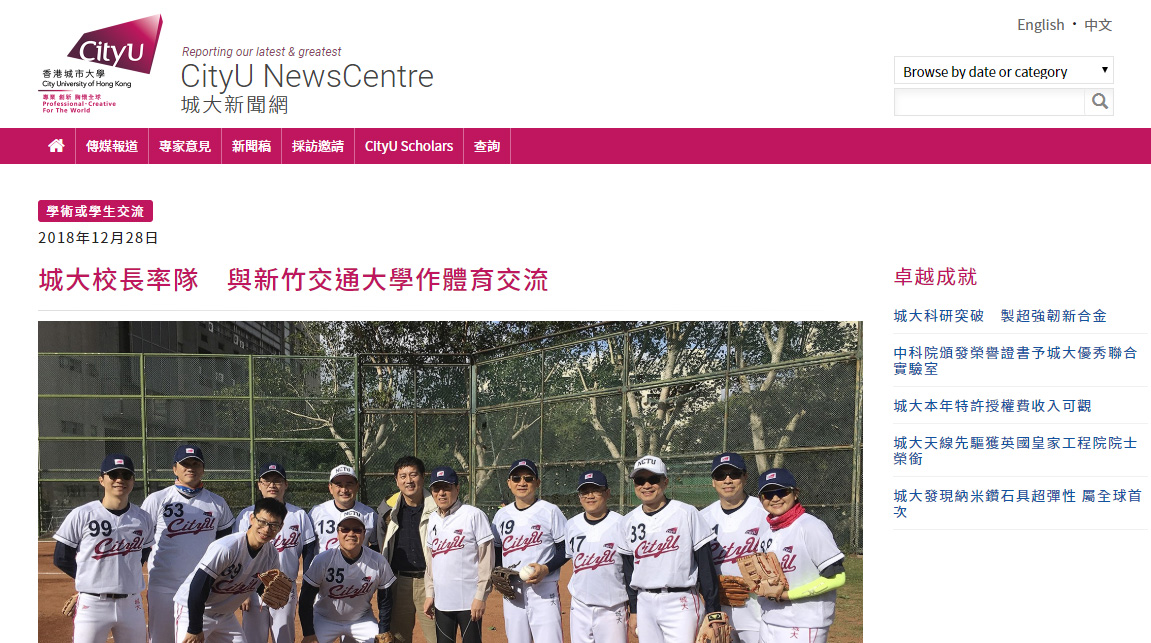 城大官方新聞網於去年12月28日刊登一篇報道,標題為「城大校長率隊 與新竹交通大學作體育交流」,然而,報道所指的「新竹交通大學」,其實是位處台灣新竹市的「國立交通大學」。