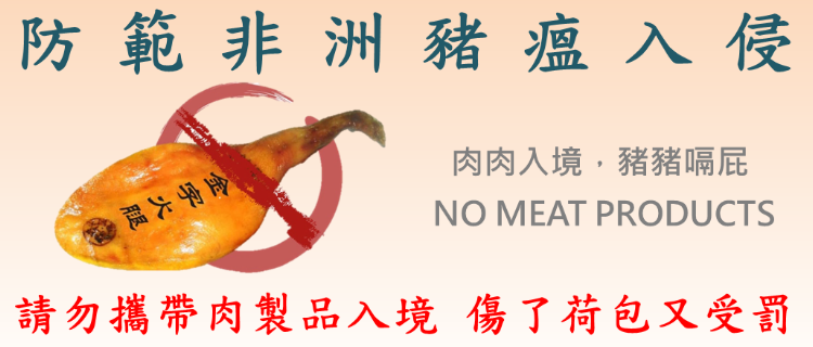 台灣行政院農業委員會動植物防疫檢疫局新竹分局今晚表示,一名姓彭的香港旅客,今午2時30分乘搭國泰航空班機入境,攜帶1.23公斤豬肉臘腸,1.36公斤鴨肉入境。