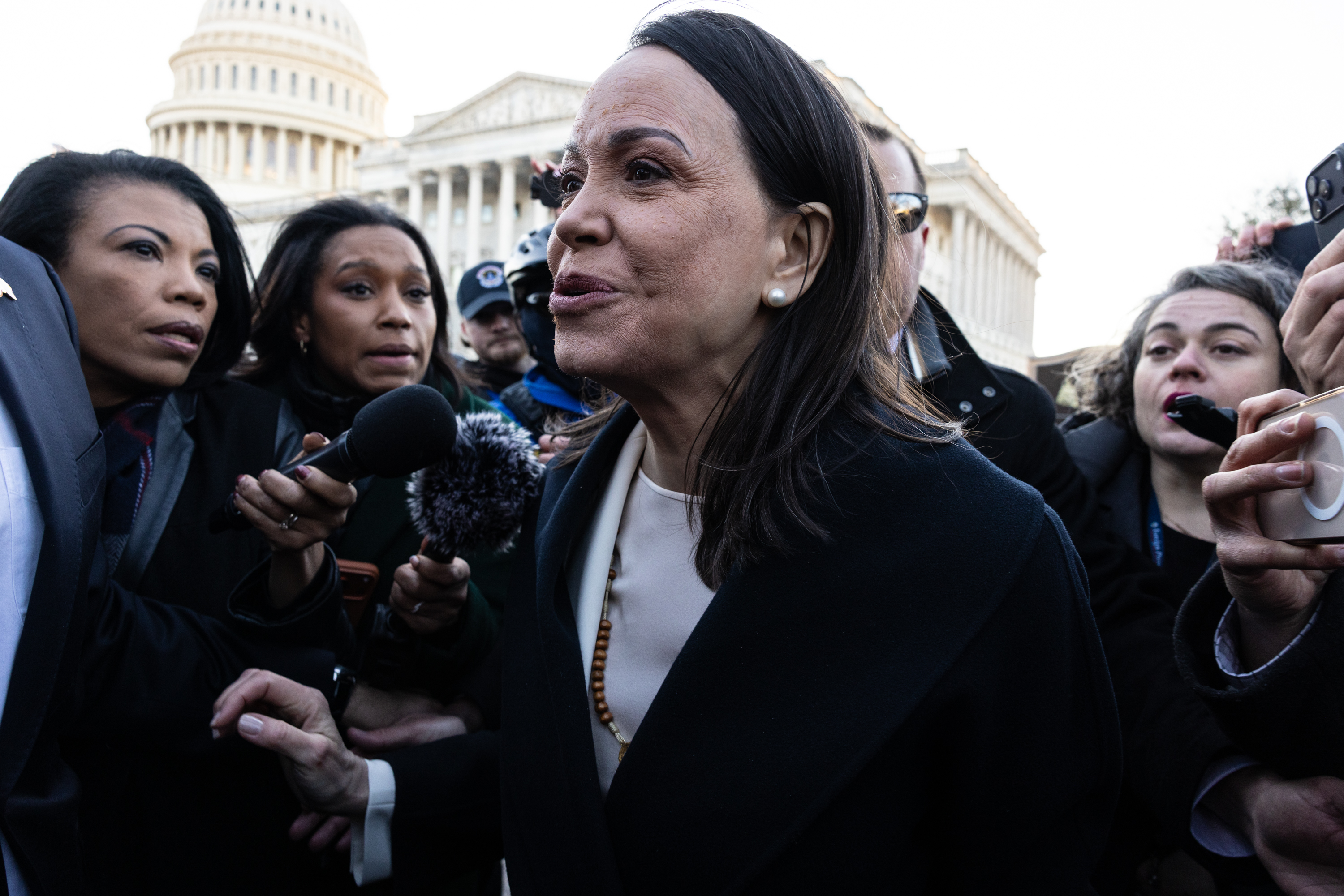 馬查多離開白宮後,向聚集在大門外的支持者演說。她以西班牙語表示,可以指望特朗普總統。
