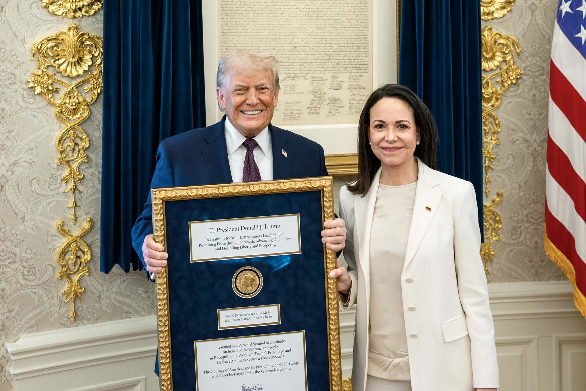 馬查多贈特朗普諾貝爾和平獎章 表彰對委內瑞拉自由貢獻