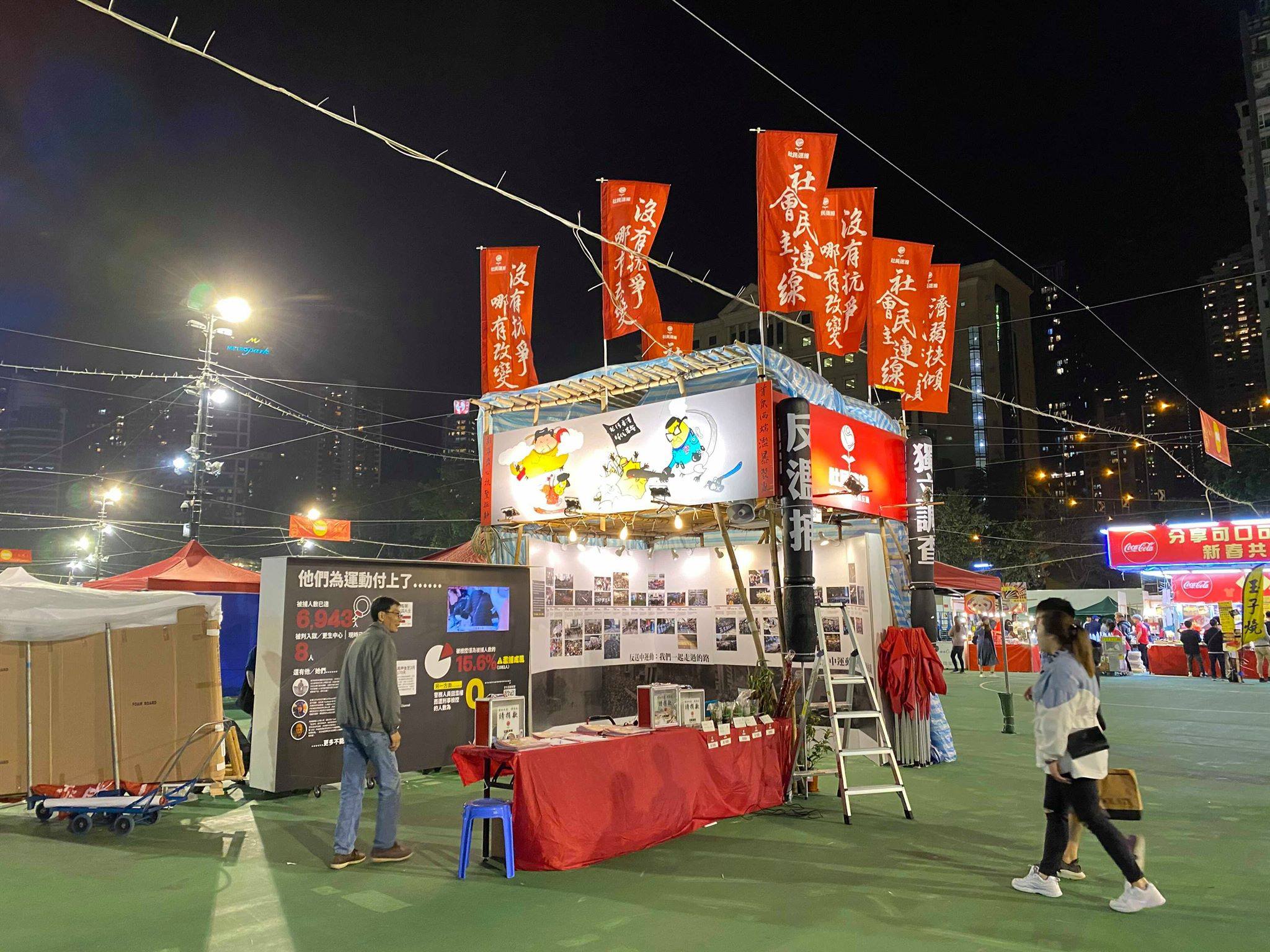 首頁港聞港聞 食環署警告社民連 指年宵攤檔展版與准售業務無關 作者:熱血編輯部 (陳五) 01-19-2020 Like Facebook Twitter 更多 Like985 分享0 留言0 維園年宵今日(1月19日)開鑼,由於今年不設乾貨攤位,故此今年在維園擺檔的政治團體大減,只得擺濕貨攤位的支聯會、社民連及守護公義基金。於維園投了兩個年宵攤檔的社民連,就收到食環署的警告信,指攤位的展板與准售鮮花業務無關,違反了特許協議,要求社民連移除,否則可即時終止特許協議。位於近銅鑼灣出口的社民連攤位,擺放了少量的年花,現場見到了展板及籌款箱,並有「獨立調查」、「反濫捕」、「反對警察加人工聯署」等標語。