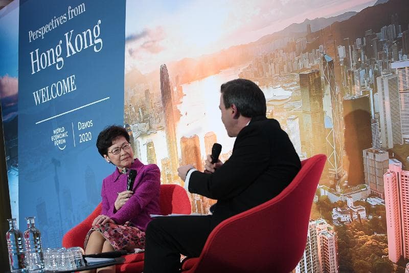 林鄭月娥率領近二十多年來陣容最鼎盛的世界經濟論壇年會香港代表團參與活動,世界經濟論壇創辦人及執行主席施瓦布教授亦有出席致辭,其他出席者包括約二百多名來自多國的政、商界領袖和傳媒翹楚。林鄭月娥在活動的對談環節中,強調香港雖然經歷困難時期,但特區政府會致力捍衞各項香港賴以成功的優勢,包括法治,她對香港未來亦充滿信心。