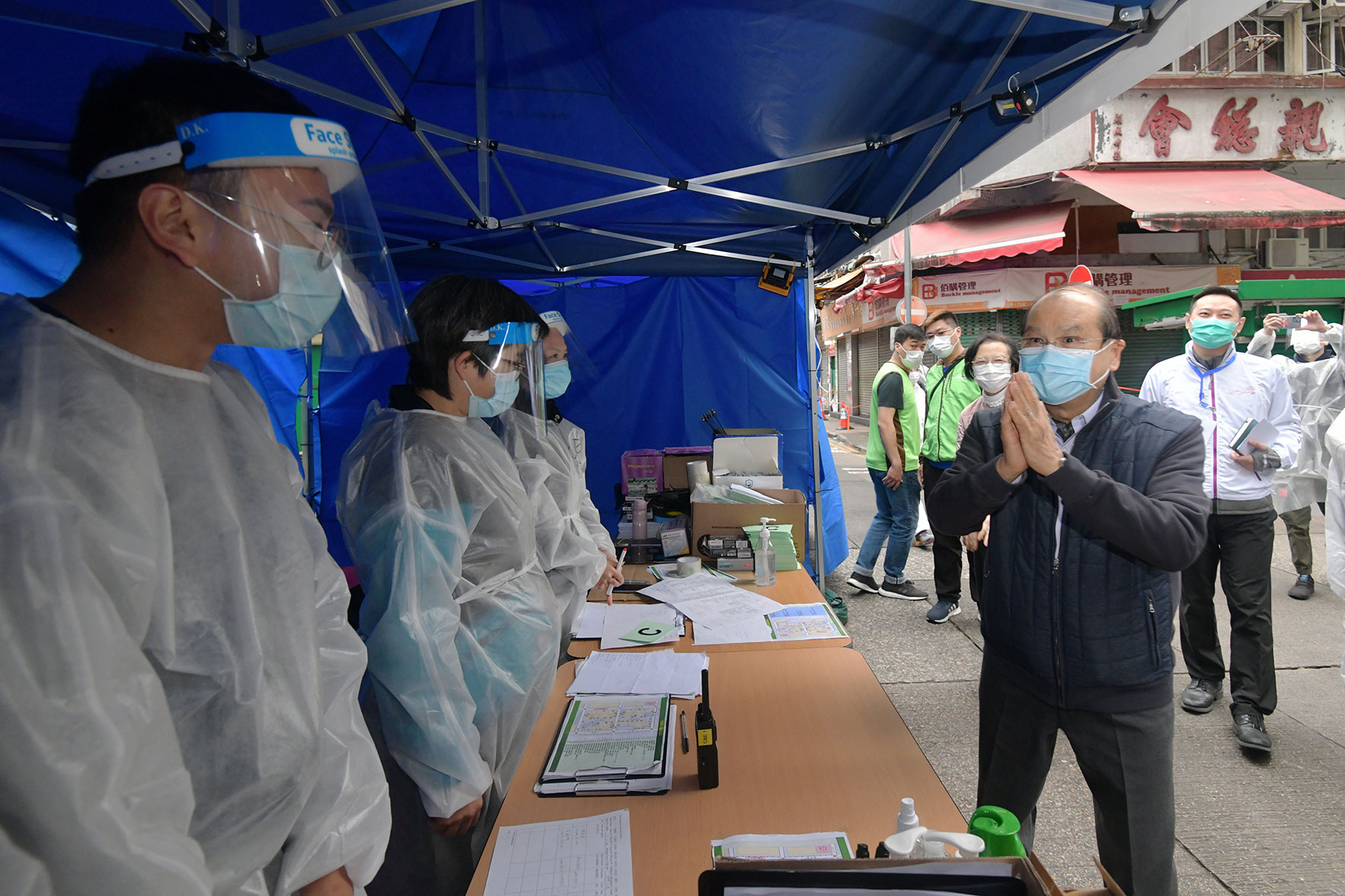 張建宗今早亦到場視察,他指昨日已有近7000人接受了檢測,今日工作人員會繼續「洗樓」,找尋「漏網之魚」,有信心如果一切情況不變,明早6時可以解封。