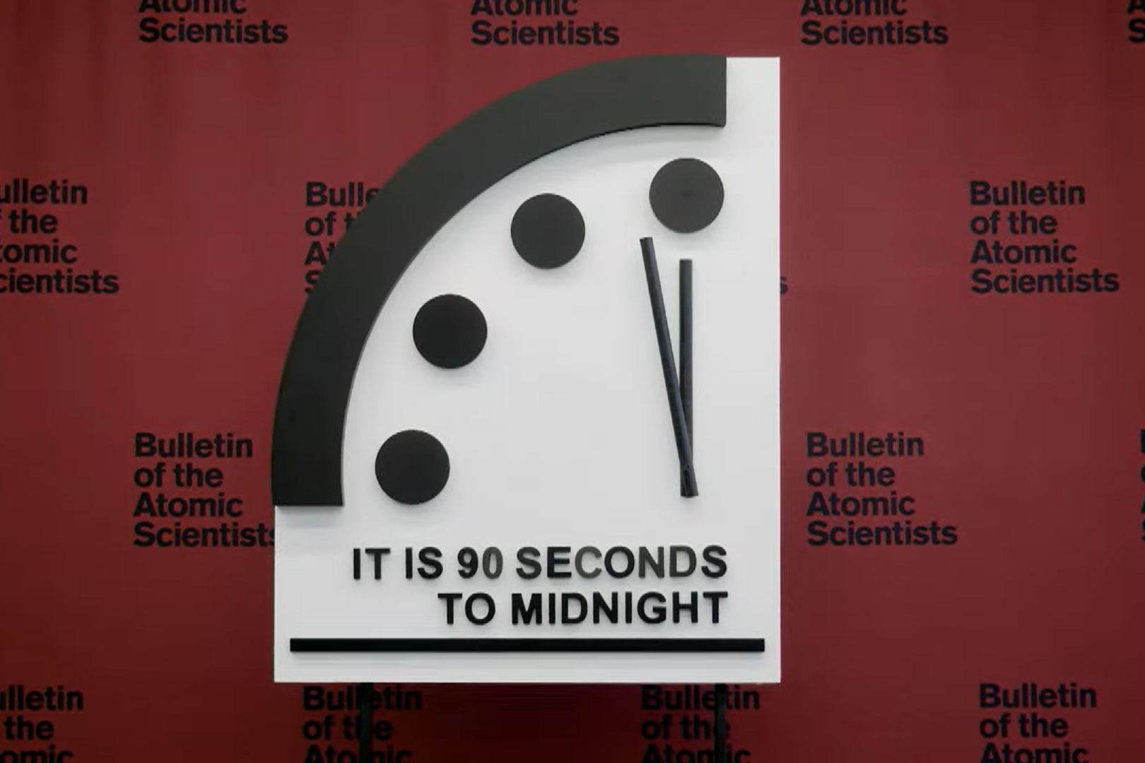 末日鐘是由頂尖科學家與安全專家設定,今年的時間維持跟去年相同,也是末日鐘設立超過75年歷史以來,指針最靠近午夜的一次。