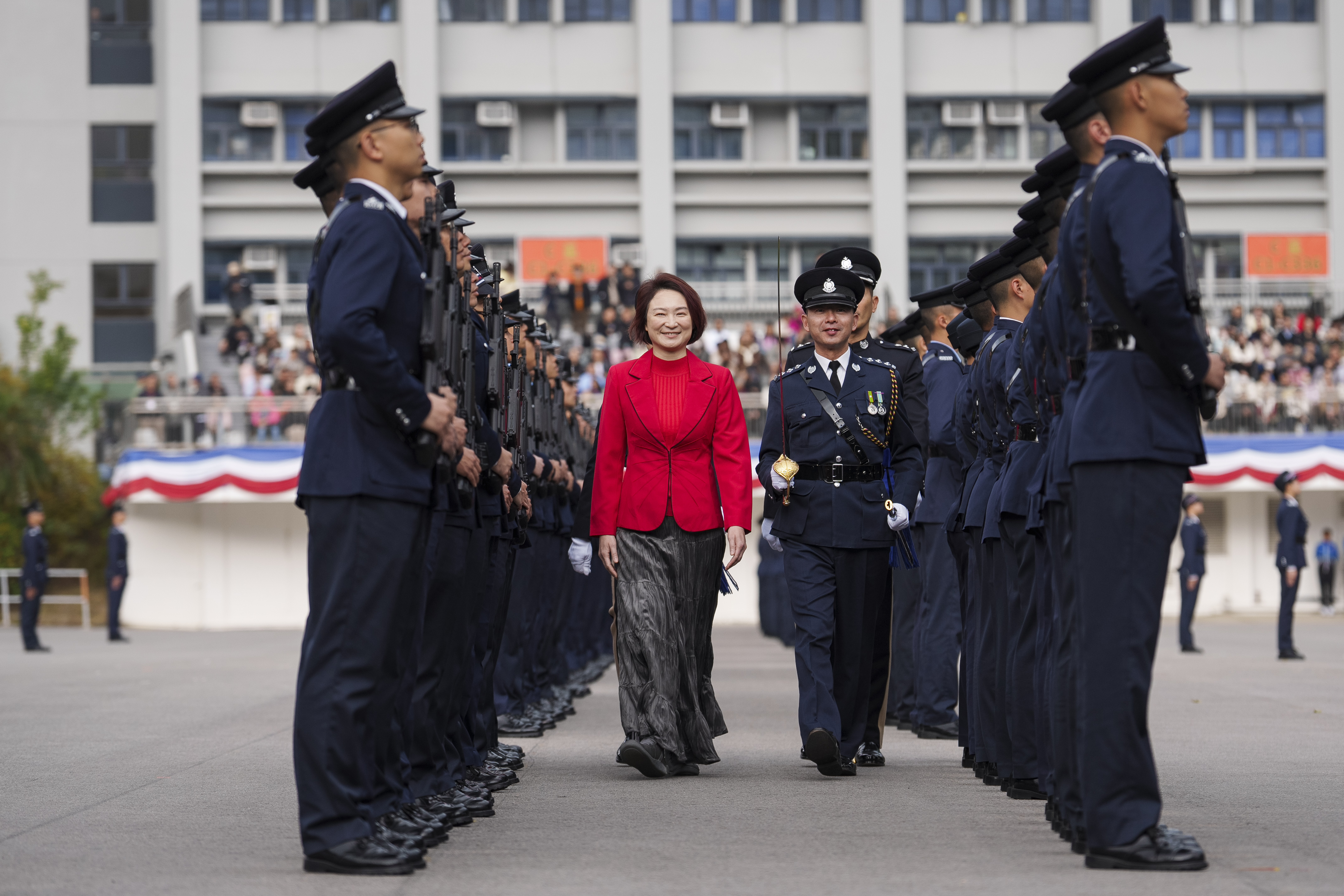李慧琼致辭時表示警察的職責,承載着市民的信任,學員畢業後便正式成為香港法治社會的守護者,肩負着維護法律與秩序的神聖使命。她認為警察不僅是一份職業,更是一種承諾,一種對社會的承擔和奉獻。