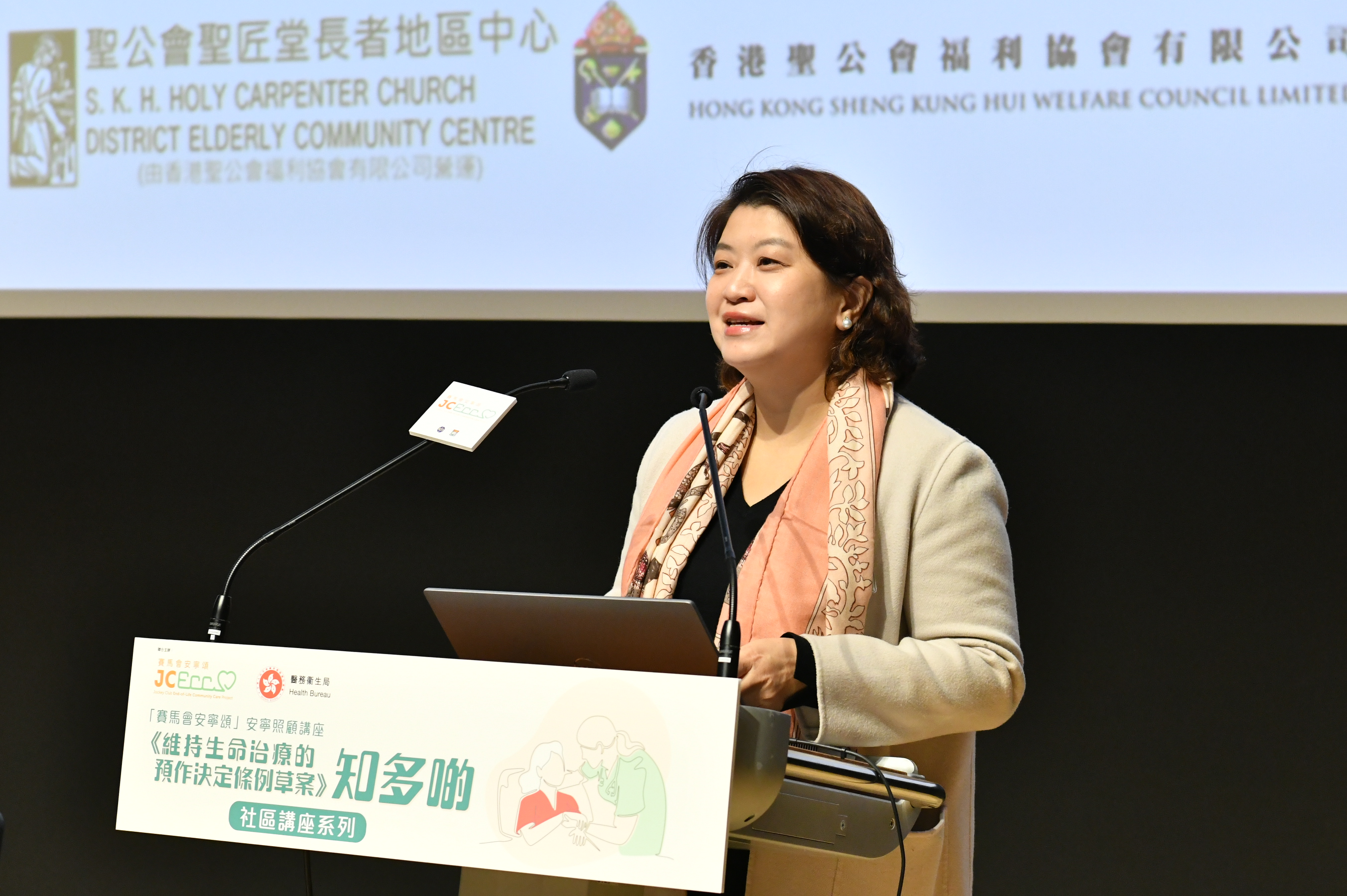 醫務衞生局副局長李夏茵醫生今日(1月27日)出席由醫衞局和香港賽馬會慈善信託基金合辦的「《維持生命治療的預作決定條例草案》知多啲社區講座」,向公眾解說政府推動有關預設醫療指示及居處離世的立法工作,以及相關政策措施可如何提高臨終病人的生活質素。