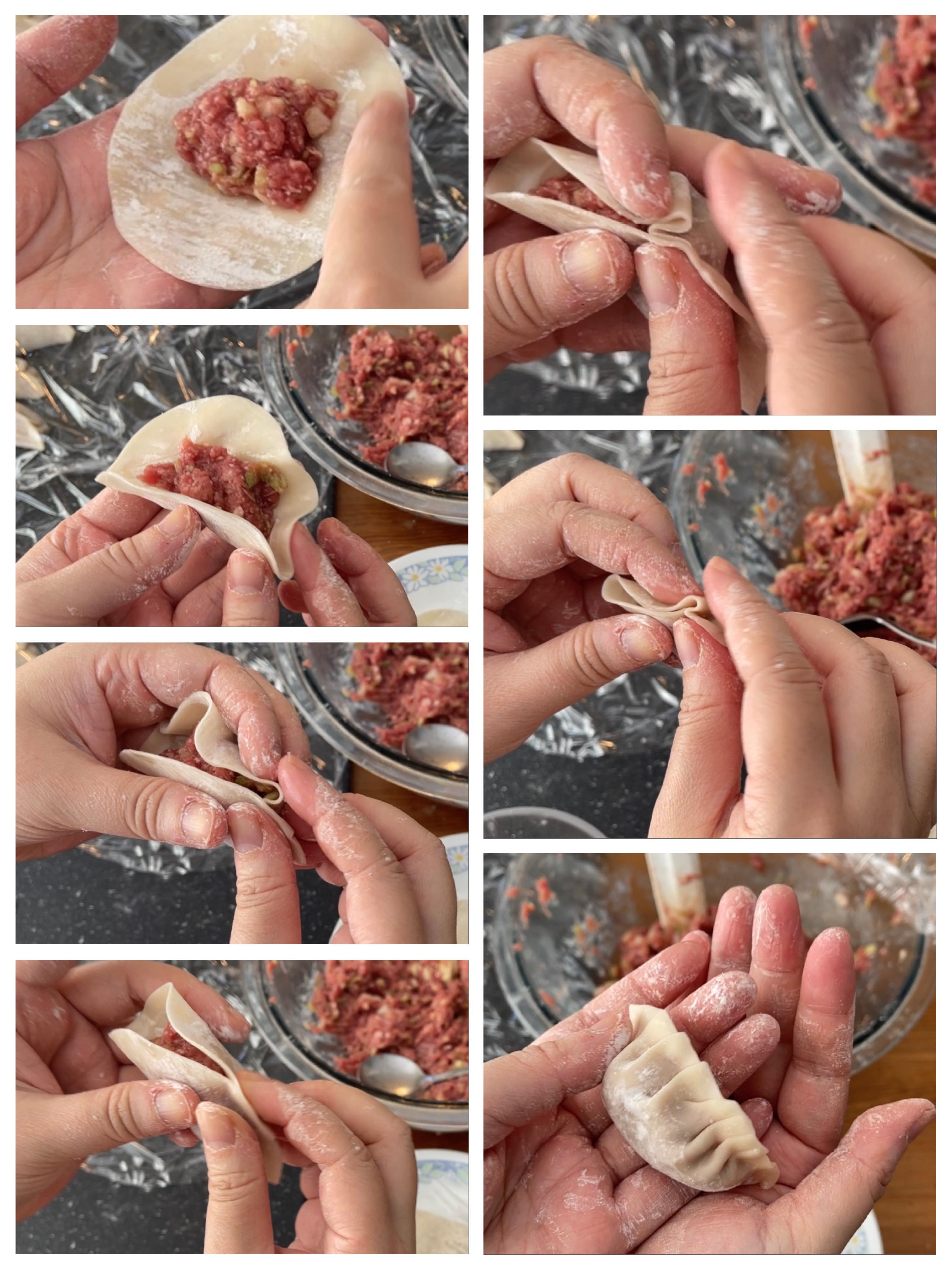 *薑蔥水除了將餡料可用水份,使水餃多汁之外,也可以辟去肉類的不好味道