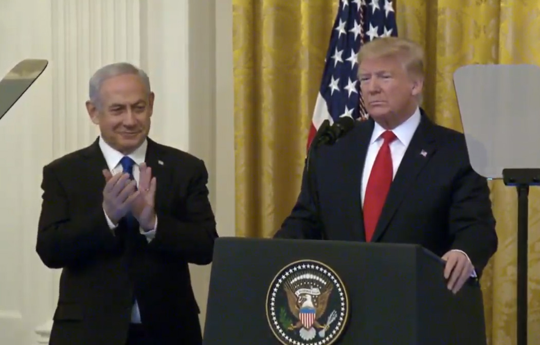 美國總統特朗普與以色列總理內塔尼亞胡周二(1月28日)在白宮見記者,公布中東和平計劃,呼籲建立巴勒斯坦國,並定都於東耶路撒冷某個部分。
