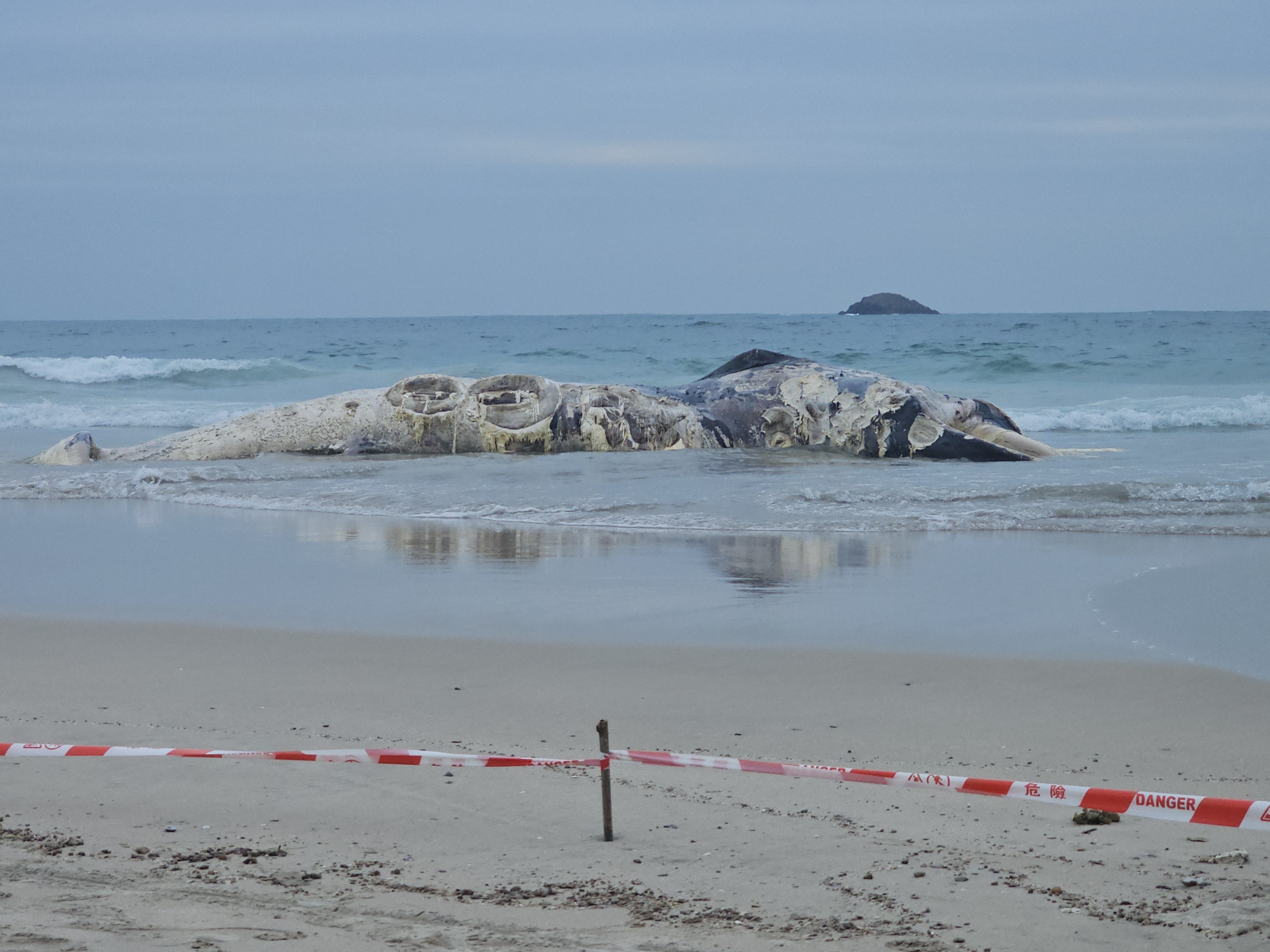 初步檢視顯示,屍體全長約11米,因嚴重腐爛,無法進一步解剖以確定死因。工作人員正盡快進行屍體棄置及現場清理工作,預計明日完成。署方呼籲期間市民應避免前往該處,以免妨礙屍體棄置工作並造成危險。