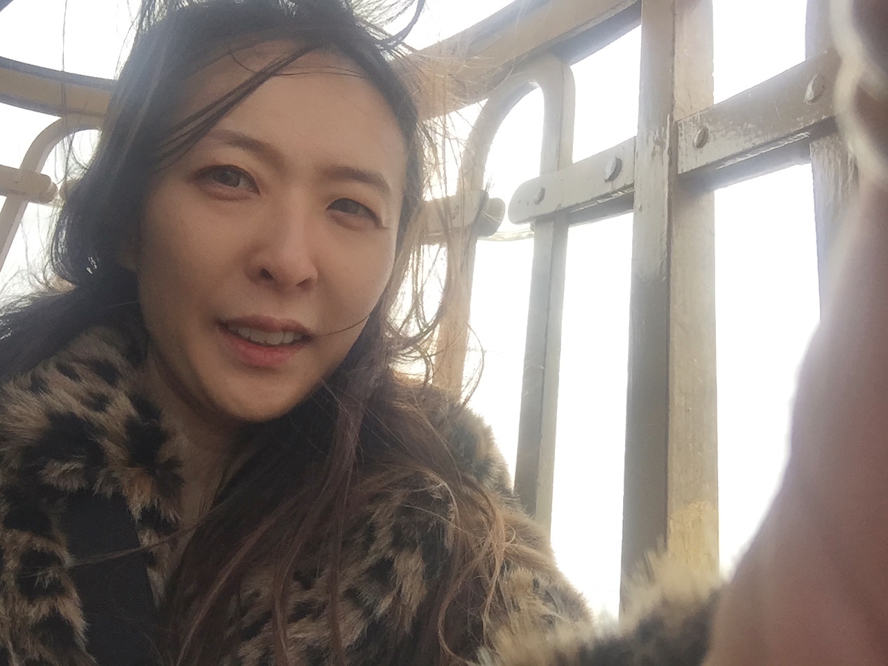 我怕電話被吹走,沒辦法站起來拍照。而且塔頂實在太大風了,自拍很多張只有這張頭髮沒有遮到臉。