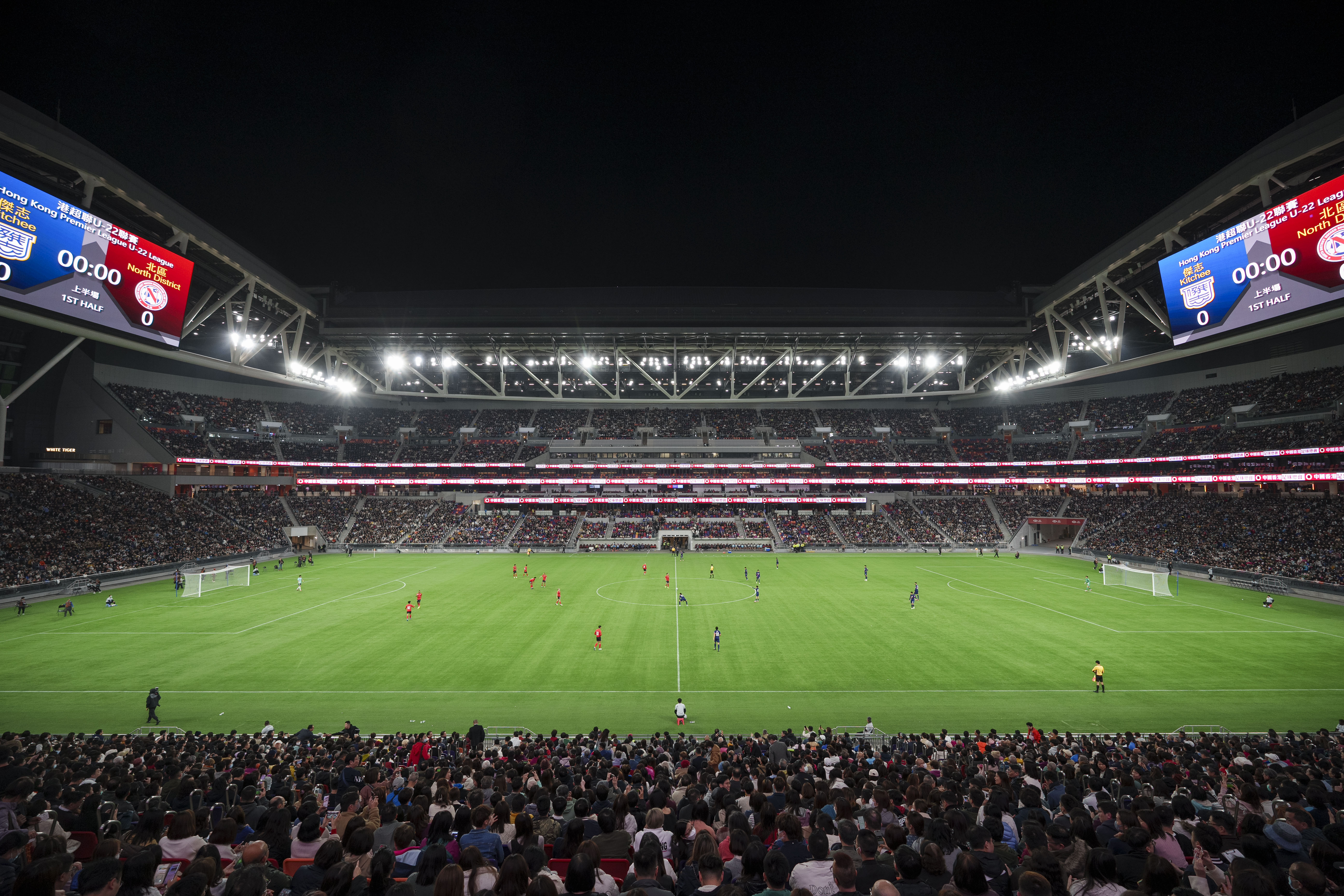 啟德體育園主場館今晚(2月4日)再次舉行大型演練,5萬名觀眾入場觀看香港超級聯賽U22聯賽「傑志對北區」的足球賽事,測試啟德主場館和周邊設施在觀眾人數達至上限時舉行運動賽事的運作情況,務求為體育園正式啓用作最好準備。