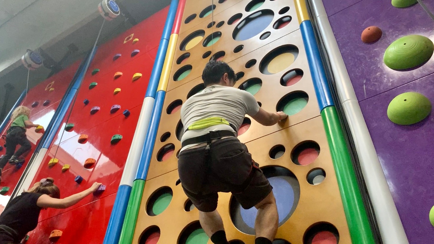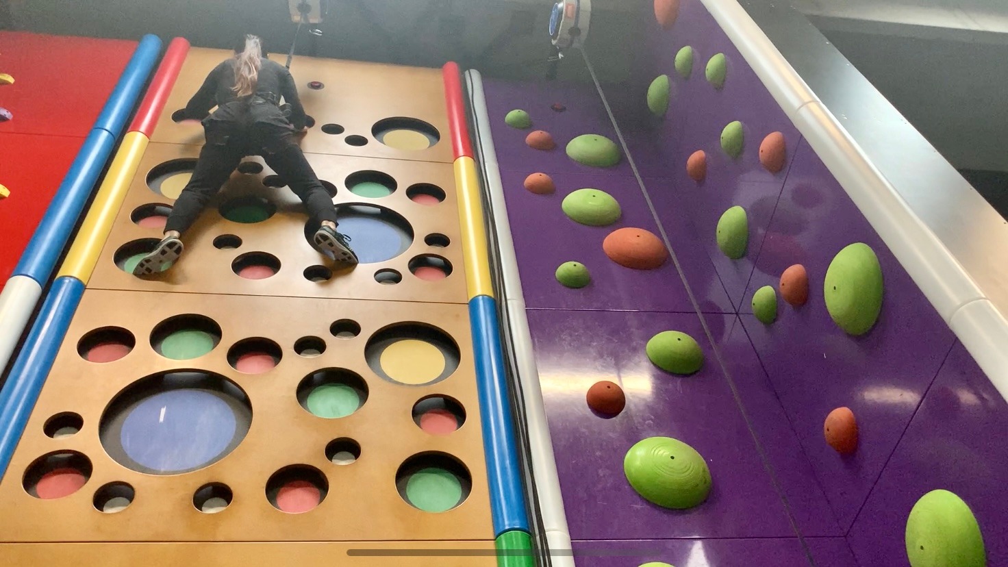 我們去的Clip’n Climb場地叫Airtrix,除了攀登場外還有彈床樂園,但兩邊分開收費,所以我們選擇了Clip’n Climb,反正彈床樂園香港也有,不用在那邊去。我們到達時發現整個遊樂場都人山人海,因為是週末,有很多一家大小,也有人在舉辦生日派對。