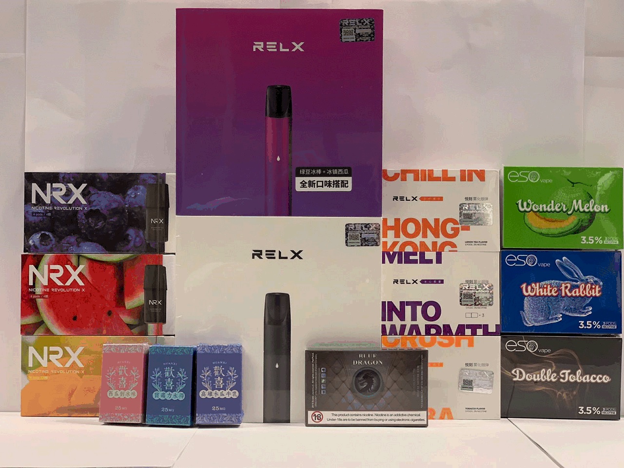 衞生署跟進市民投訴,發現有人於灣仔的零售店出售一款名為「RELX」並標示含有尼古丁成分的產品。昨日就上述零售店及其位於旺角的分店作出行動,其間再發現多款標示含有尼古丁用於電子煙的液體產品。