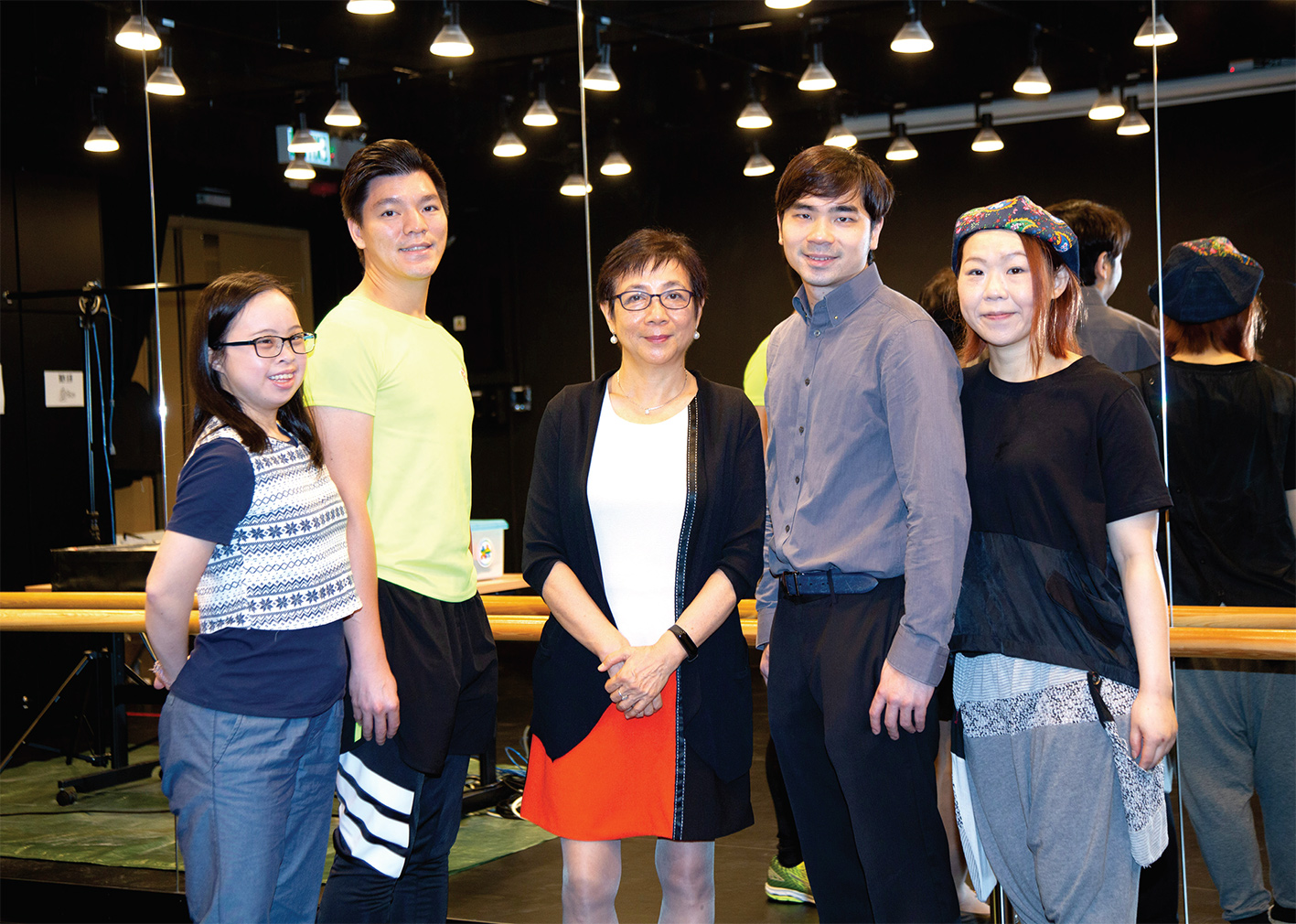 左起:劉理盈、戎景豪、香港展能藝術會主席林彩珠、李昇及趙惠芝