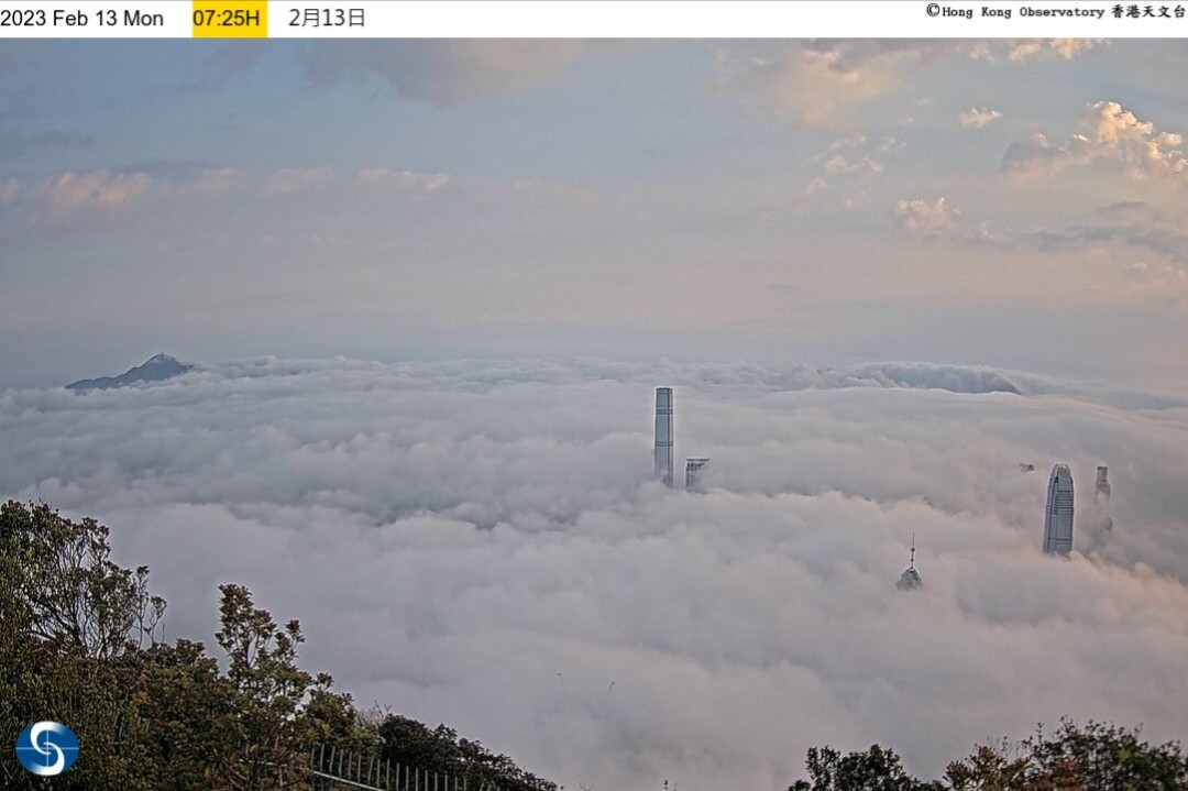 一股潮濕的偏東氣流正影響廣東沿岸,本港今早(2月13日)有霧,港內能見度降至500米以下。