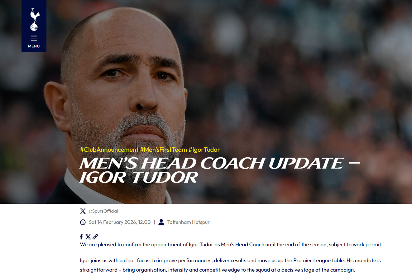 英超球隊熱刺宣布,任命克羅地亞籍的杜陀接掌帥印至季尾,取代日前被炒的法蘭。