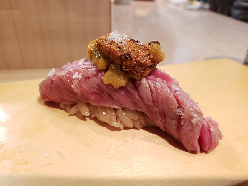 只想淺嚐小吃的話,WayguMafia的和牛三文治是不錯的選擇。這家店最近登陸香港,並採取會員預約制,必須課金成為會員才接納訂座;惟東京的中目黑店不受此限。此店裝潢簡約,是美式小食店的格局;而講到三文治,麵包軟硬程度往往是成敗關鍵。一般來說,加入餡料後,麵包通常較易變太軟,失去嚼頭;但烘得太乾脆的麵包沒有水份,則與餅乾無異。這裡的和牛三文治不算便宜,筆者當日點選了每客一萬円的牛柳三文治,麵包酥脆鬆軟,吉列牛柳鮮嫩多汁兼有肉香,毫不油膩,配搭酸辣醬汁同吃,惹味非常。