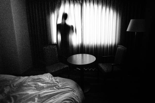 他就決定到街上走走,當打開門的時候,看到對面房間的門打開,一個長髮黑衣的女人坐在床上哭泣。