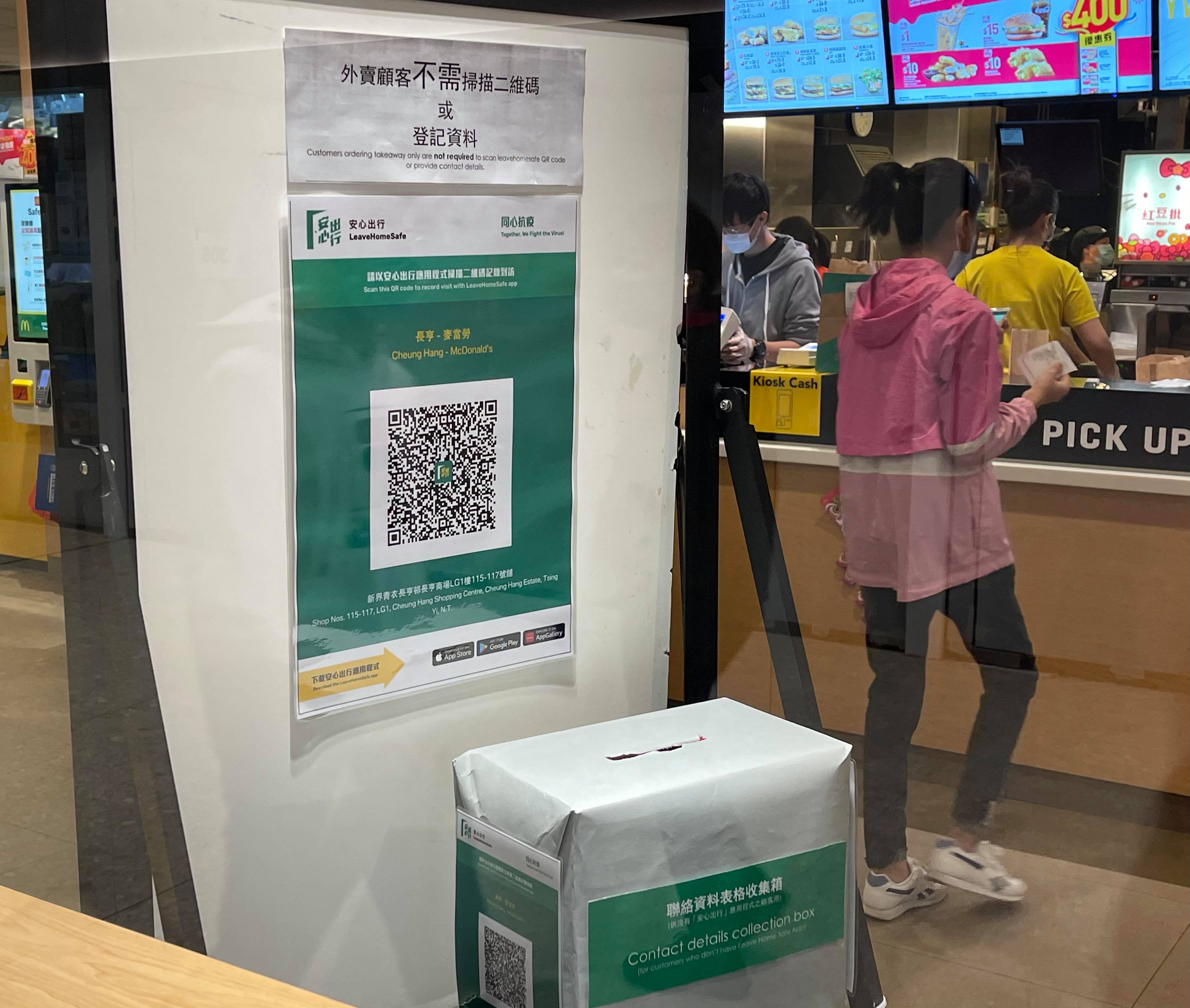 本報在青衣長亨邨的麥當勞,見到店內張貼告示,指明「外賣顧客不需掃瞄二維碼或登記資料」。