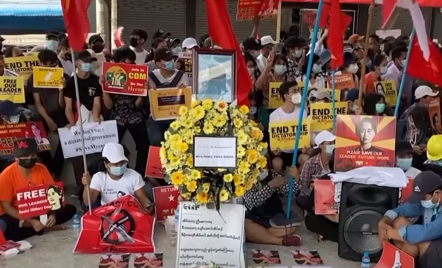 在最大城市仰光,約1千人參與悼念昨日去世的女死者。該名女示威者上周參與集會時,於警方的驅散行動中頭部中槍,延至昨日不治。